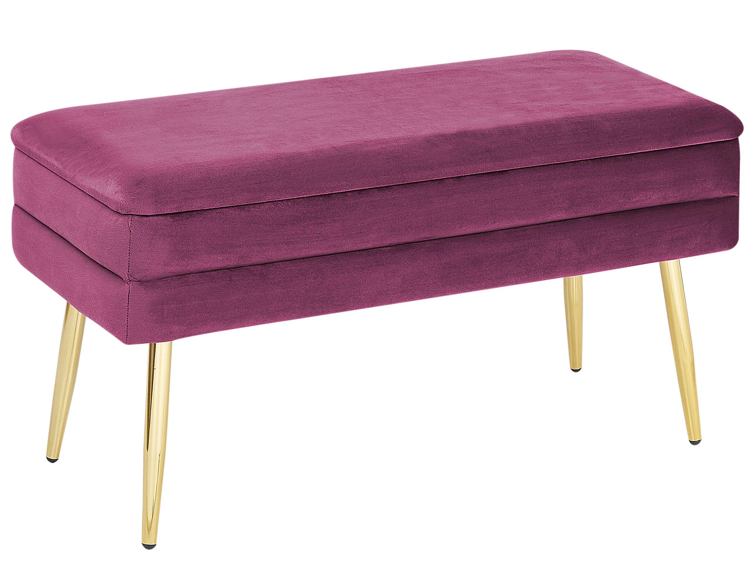 Glamouröse Bank in Burgunderrot mit Stauraum und goldenen Metallbeinen. Peppen Sie Ihren Wohnbereich mit dieser wunderschönen Bank auf. Der hochwertige Samtstoff in der Farbe Burgunderrot und die goldenen Metallbeine machen dieses Wohnaccessoire zu einem Must-have in jedem glamourösen Innenraum. Dazu kommt noch die breite und bequeme Sitzfläche, dank der dieses Produkt nicht nur ästhetisch ansprechend sondern auch praktisch ist.