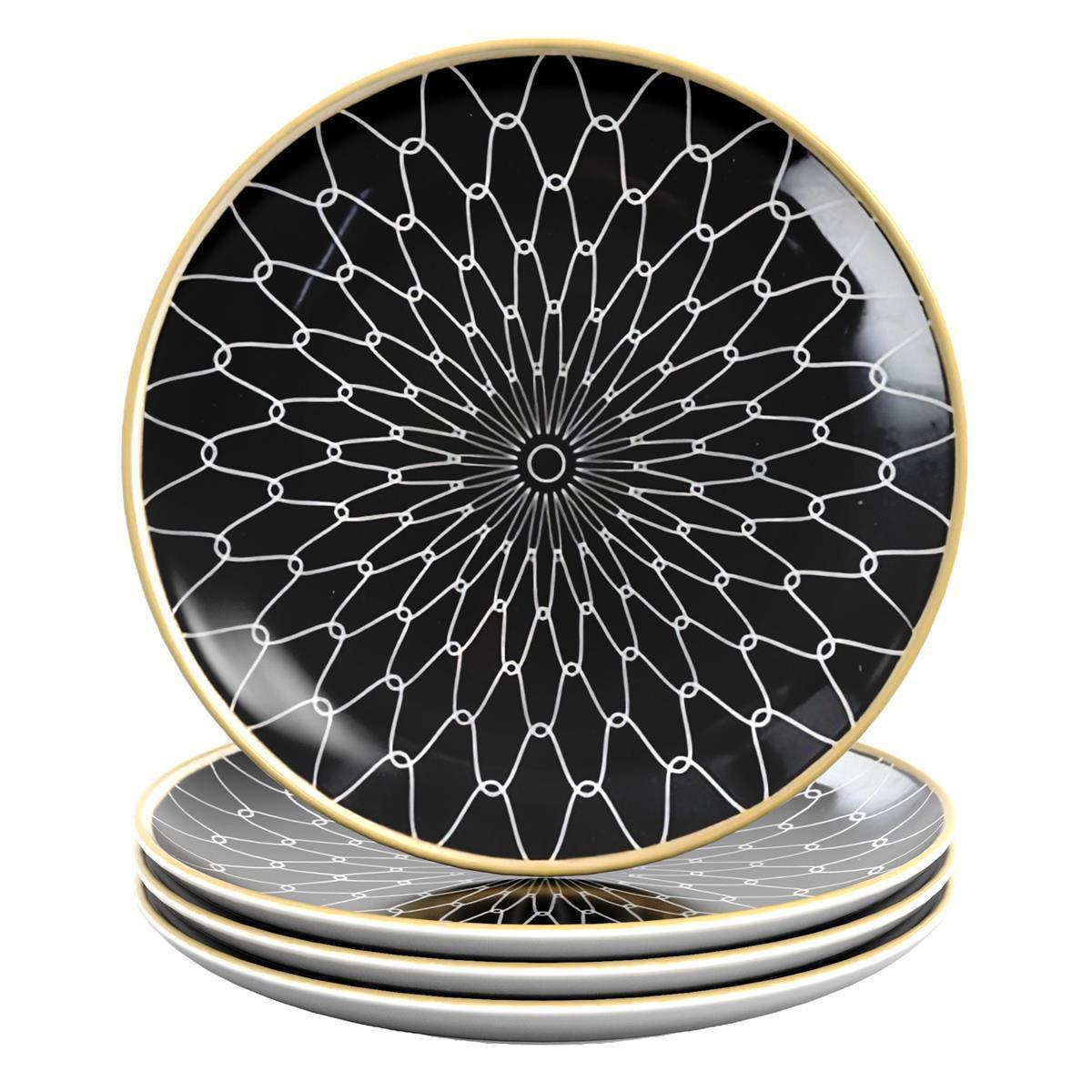 Intirilife 4x Porzellan Teller Muster Verbunden