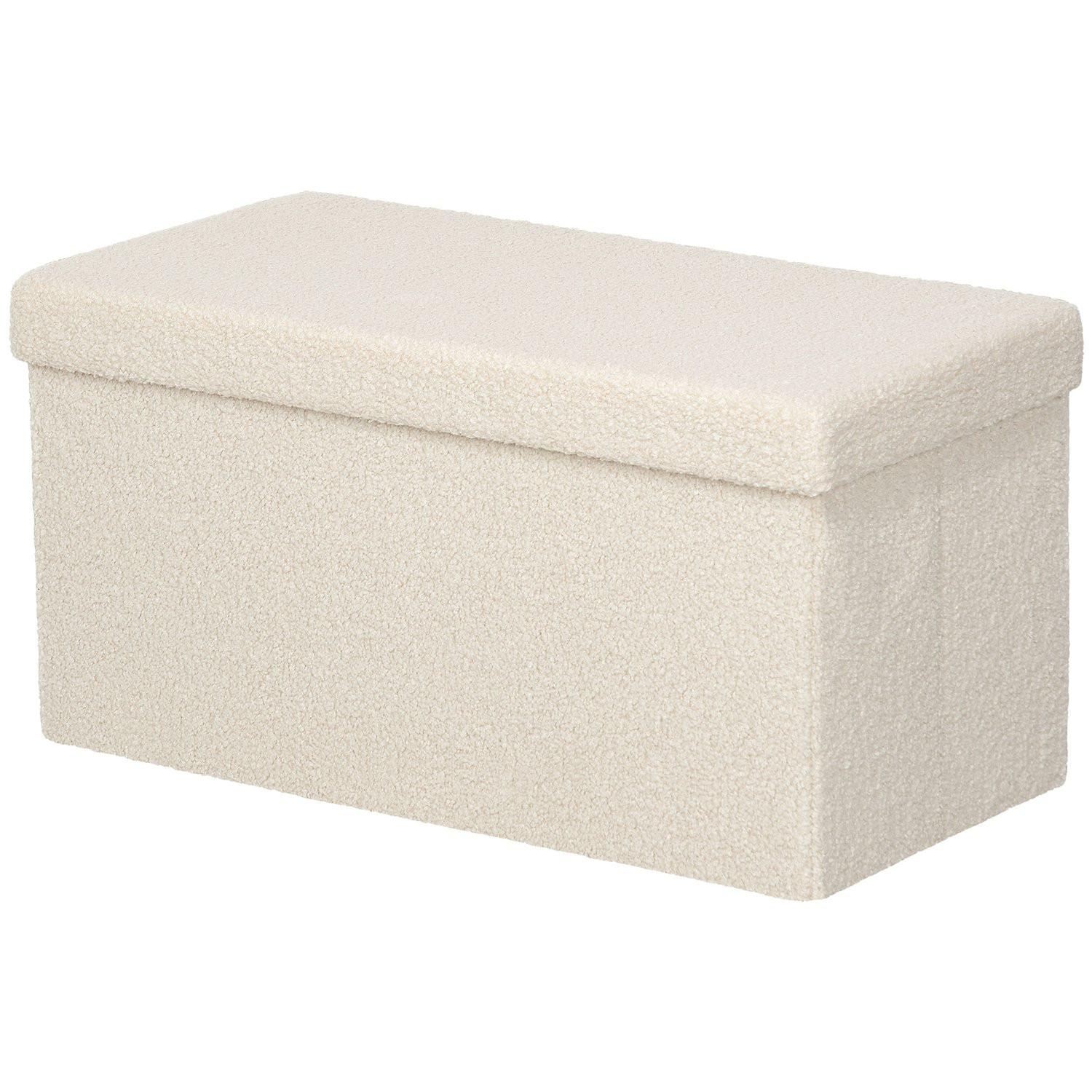 Northio Sitzbank mit Stauraum, faltbar Polsterbank, Bettbank mit Samtoptik, Sitztruhe für Flur Schlafzimmer Wohnzimmer, 76 x 38 x 38 cm Cremeweiß