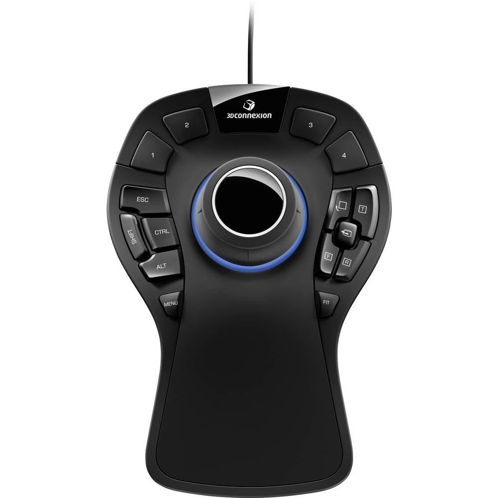 SpaceMouse Pro. Der Standard für Ingenieure Perfekt für Sie: wenn Sie mehrere Stunden pro Tag in 3D-Anwendungen arbeiten und nach einem ergonomischen und effizienten Workflow suchen. Die SpaceMouse Pro von 3Dconnexion ermöglicht professionellen Konstrukteuren und Designern eine intuitive, präzise und an Ihre persönliche Arbeitsweise angepasste 3D-Navigation. Durch ihr optimiertes ergonomisches Design und die innovative Bildschirmanzeige ist sie nicht nur komfortabel zu bedienen, sondern sorgt auch für produktivere Arbeitsabläufe. Alles im Griff Mit der 3DConnexion Controller-Kappe der SpaceMouse Pro hält der Anwender das 3D-Objekt direkt in seiner Hand. So, als würde er einen Apfel halten, den er mit der anderen Hand schält. In unterstützten Programmen sind alle Softwarefunktionen anwendungsspezifisch und leicht über 11 Navigations- und vier frei programmierbare Funktionstasten zu erreichen. Häufige Wechsel zwischen Tastatur und 3D-Maus gehören ab sofort der Vergangenheit an. Per Bildschirmanzeige können Sie sich schnell über die aktuelle Belegung der intelligenten Funktionstasten informieren. Ein zusätzlich einblendbares numerisches Zahlenfeld ermöglicht die Eingabe von Ziffern per Mausklick. Die Hand muss nicht mehr zwischen Maus und Tastatur wechseln und die Augen und Ihre Aufmerksamkeit bleiben auf dem Bildschirm. Das vereinfacht viele Arbeitsschritte und spart Zeit. Ergonomisch, robust und bewährt Die SpaceMouse Pro ist äusserst robust, arbeitet präzise und ist einfach zu bedienen. Leicht zu erreichende Funktionstasten, die gut in der Hand liegende 3DConnexion Controller-Kappe und die vollflächige und weiche Handauflage bieten einen unvergleichlichen Bedienkomfort. Das ergonomische Design bewährt sich vor allem in sehr langen Arbeitssitzungen mit der SpaceMouse Pro können Sie über viele Stunden hinweg komfortabel arbeiten