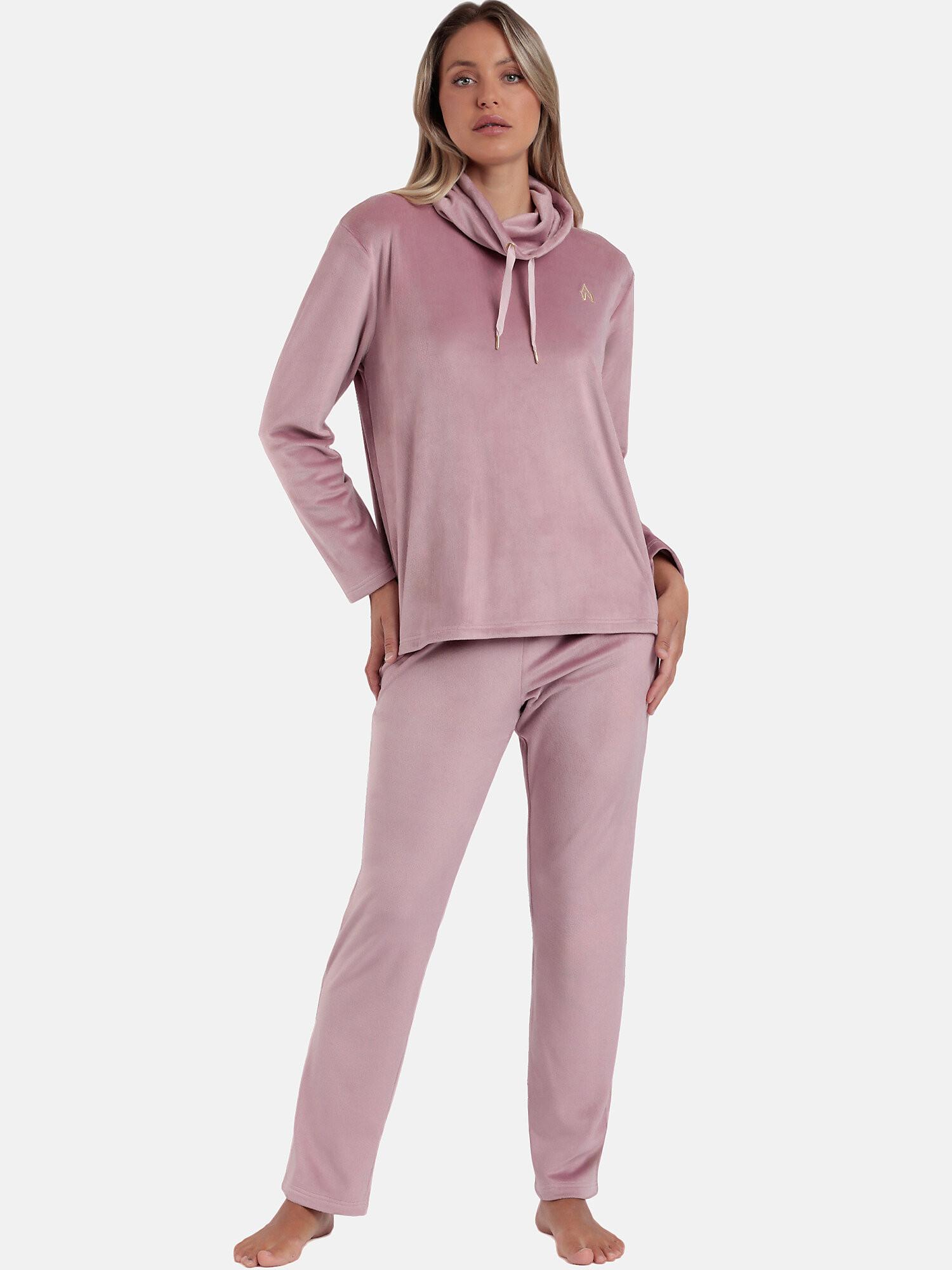 Admas, Luxury Samt Pyjama Set Stehkragen Sweatshirt und Hose