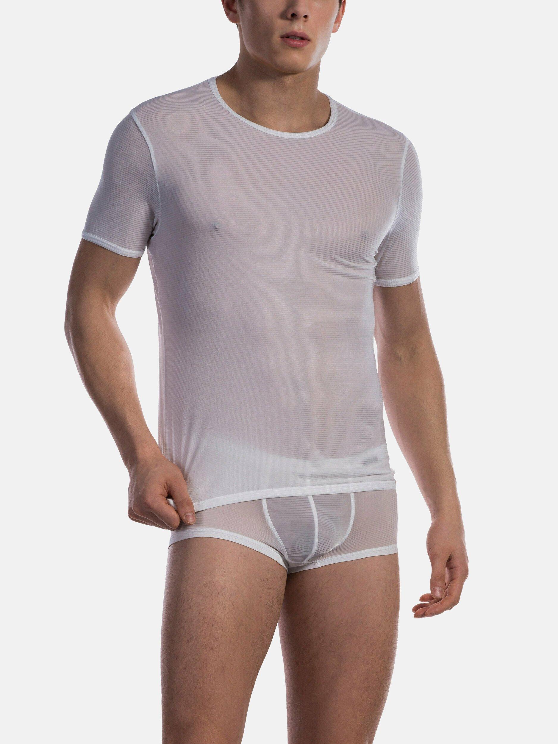 Dieses Kurzarm-T-Shirt ist aus einem hochelastischen und atmungsaktiven Mikrofasergewebe mit feiner Rillenstruktur gefertigt. Das Design bietet einen raffinierten Stil mit einer subtilen Transparenz durch die Rillenstruktur, die ein weiches und luftiges Gefühl auf der Haut vermittelt.