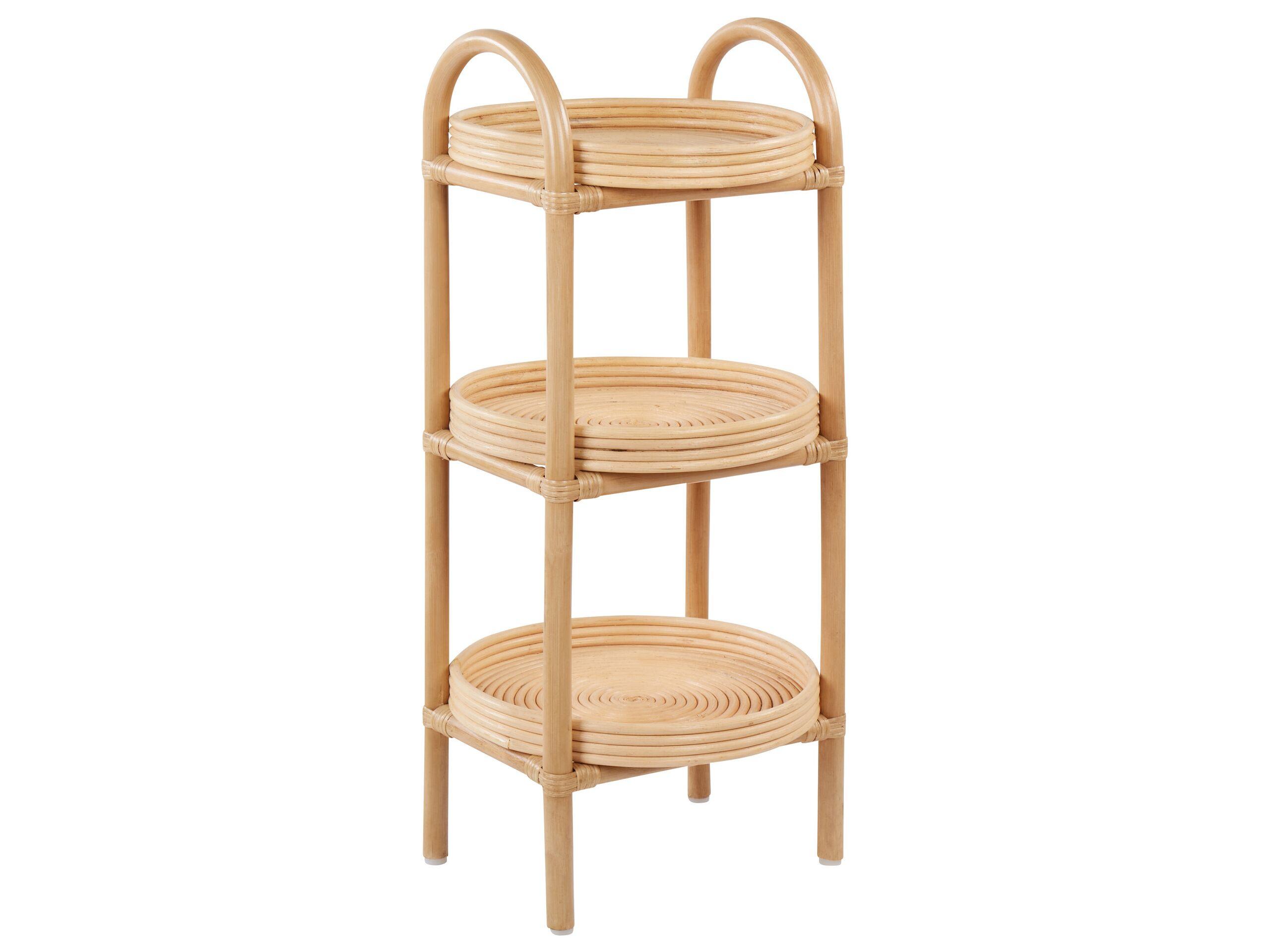 Rattantisch aus Naturmaterial mit Ablageflächen. Dieser elegante Ablagetisch mit drei Ebenen verleiht jedem Innen- oder Aussenbereich einen Hauch von natürlichem Charme. Er ist aus natürlichem Rattan gefertigt und bietet viel Stauraum für das Notwendige, während sein robustes und dennoch leichtes Design für einfache Mobilität sorgt. Er ist ideal für die Präsentation von Dekorationsartikeln, Pflanzen oder Alltagsgegenständen und verbindet Funktionalität mit Stil.