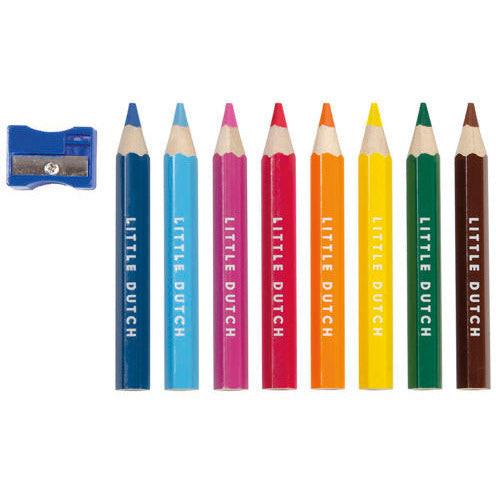 Little DutchHolzfarbstifte. Set mit 8 Farben, die Buntstifte sind kurz und dick für einfachen Griff. Inklusive Spezialspitzer