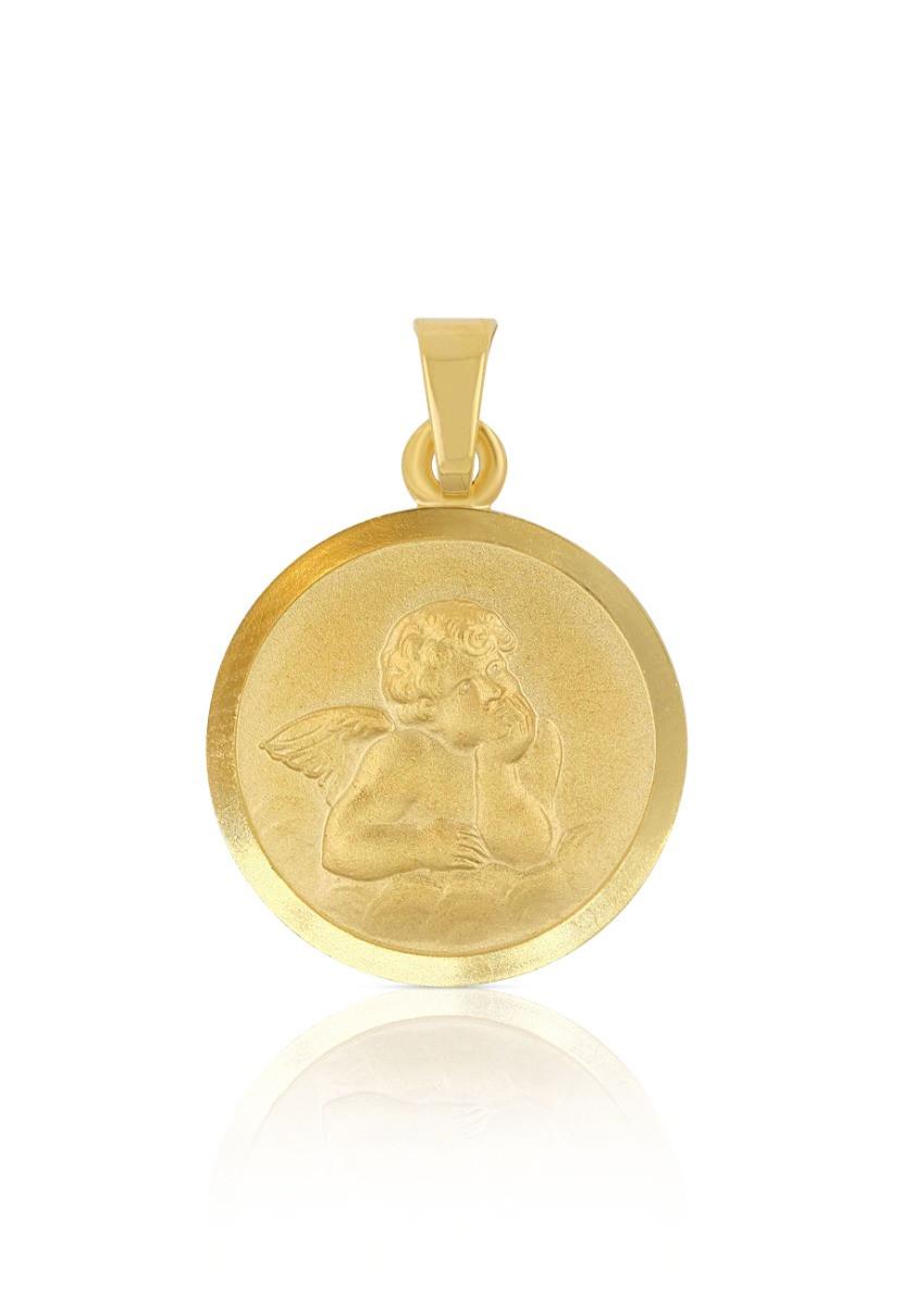 MUAU Schmuck Anhänger Medaille Engel Gelbgold 750, 16mm