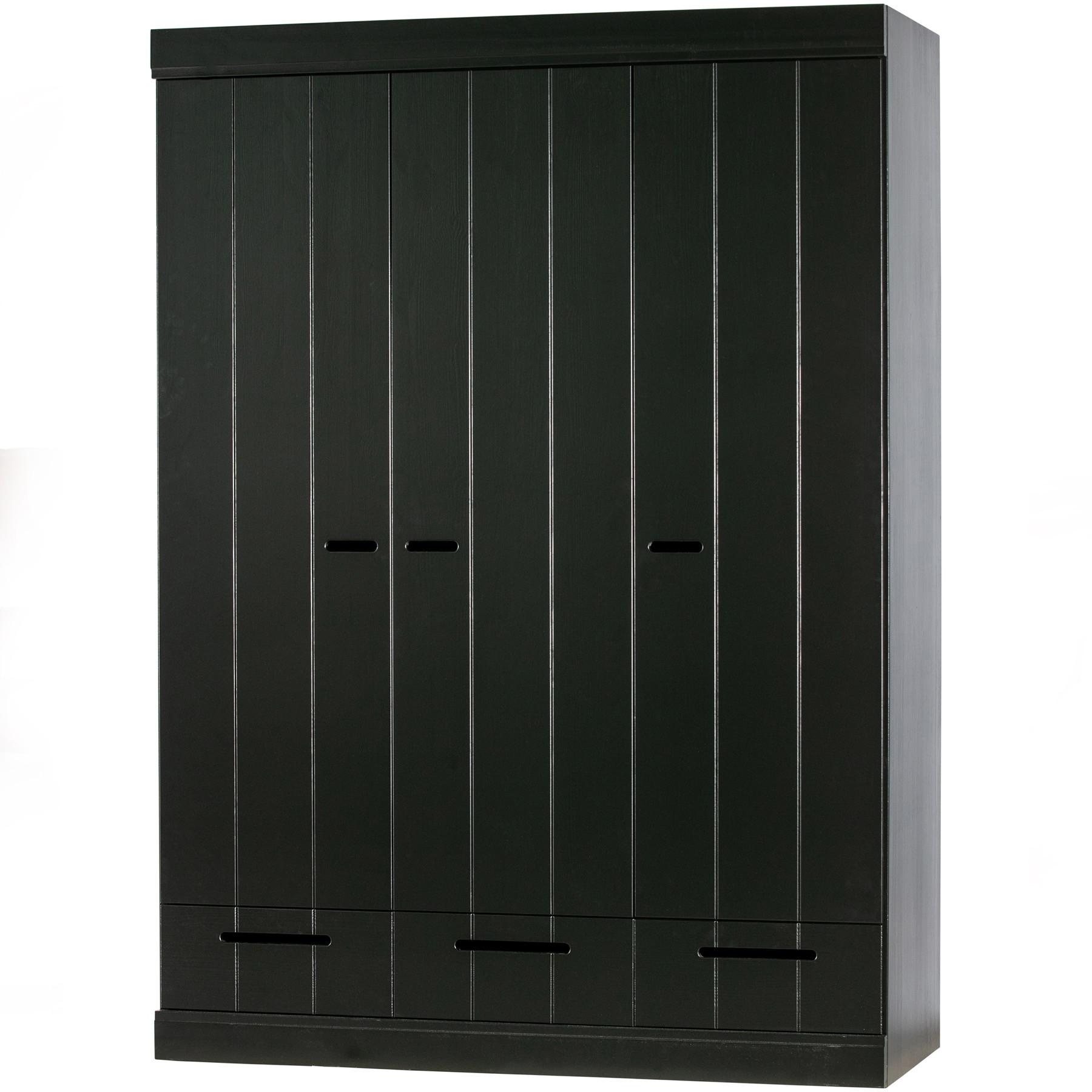 Geräumiger, stabiler 3-türiger Schrank Massives Kiefernholz, FSC-zertifiziert, schwarz lackiert Gestalten Sie Ihre eigene Schrankwand H 195 cm x B 140 cm x T 53 cm
