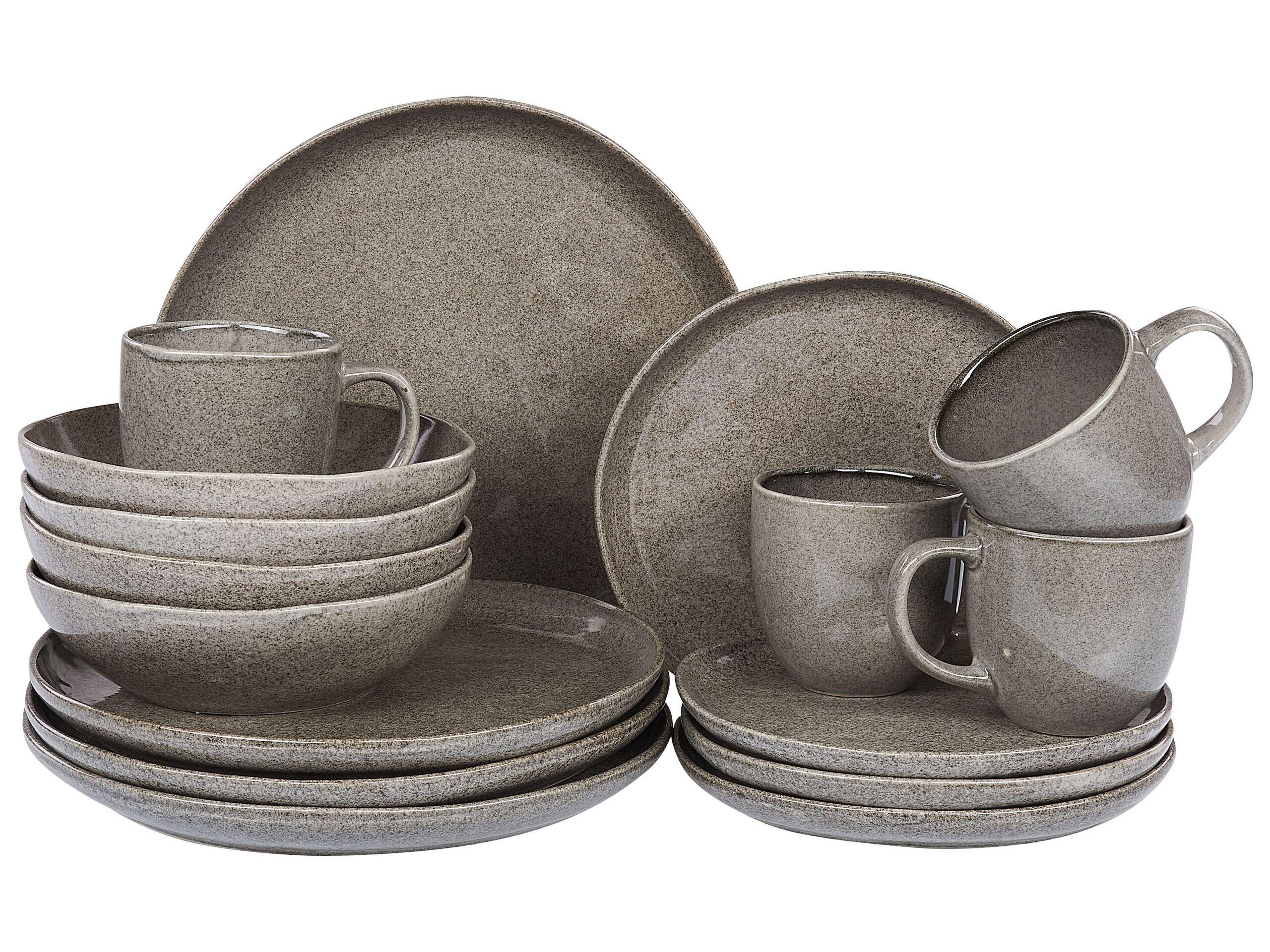 Beliani 16-teiliges Tafelservice aus Steinzeug Klassisch COSTMARY