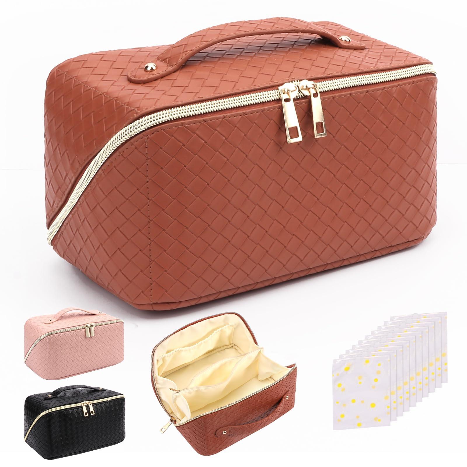 Diese Frau Kosmetiktasche ist aus PU-Leder-Stoff, der die Form der Kulturtasche mehr dreidimensional, langlebig und dicker als ähnliche Produkte macht. Die Kosmetiktasche groß hat sechs Fächer für Sie, um Ihr Make-up, Make-up-Tools und Hautpflege saperately.Designed mit 2 großen Hauptfächern, 1 lange elastische Tasche, 1 lange Reißverschlusstasche und 2 kleine elastische Tasche zu organisieren.Sie können Ihre verschiedenen Kosmetika nach Ihren Bedürfnissen zu trennen. Die Kosmetiktasche für Frauen hat einen Griff an der Oberseite, sie ist leicht zu tragen und bietet Ihnen barrierefreies Packen und bequemes Reisen. Der Metallreißverschluss lässt sich leichtgängig öffnen. Der doppelte Reißverschluss ermöglicht es Ihnen, in zwei Richtungen zu öffnen und zu schließen, so dass es einfach ist, alle Arten von Dingen herauszunehmen. Die Schminktasche ist 9×4,3×4,3 Zoll groß, klein und leicht und kann leicht in einen Rucksack, ein Gepäckstück, einen Koffer usw. gesteckt werden. Es ist genug, um viele Ihrer Notwendigkeiten zu halten. Nicht nur Kosmetika, sondern auch Schmuck, ätherische Öle, elektronisches Zubehör, Toilettenartikel, Taschentücher, Brillen, etc. * Elegante und praktische Reisekosmetiktasche mit 10PCS Reiseaufbewahrungstasche werden oft als schöne Geschenke für Muttertag/Frauentag/Valentinstag/Geburtstag/Halloween/Weihnachten, etc. verwendet. Ideales Geschenk für Frauen, Damen und Mädchen oder die besondere Person in Ihrem Leben.