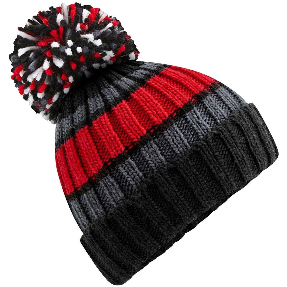Beechfield Hygge Gestreifte Mütze mit Pompon