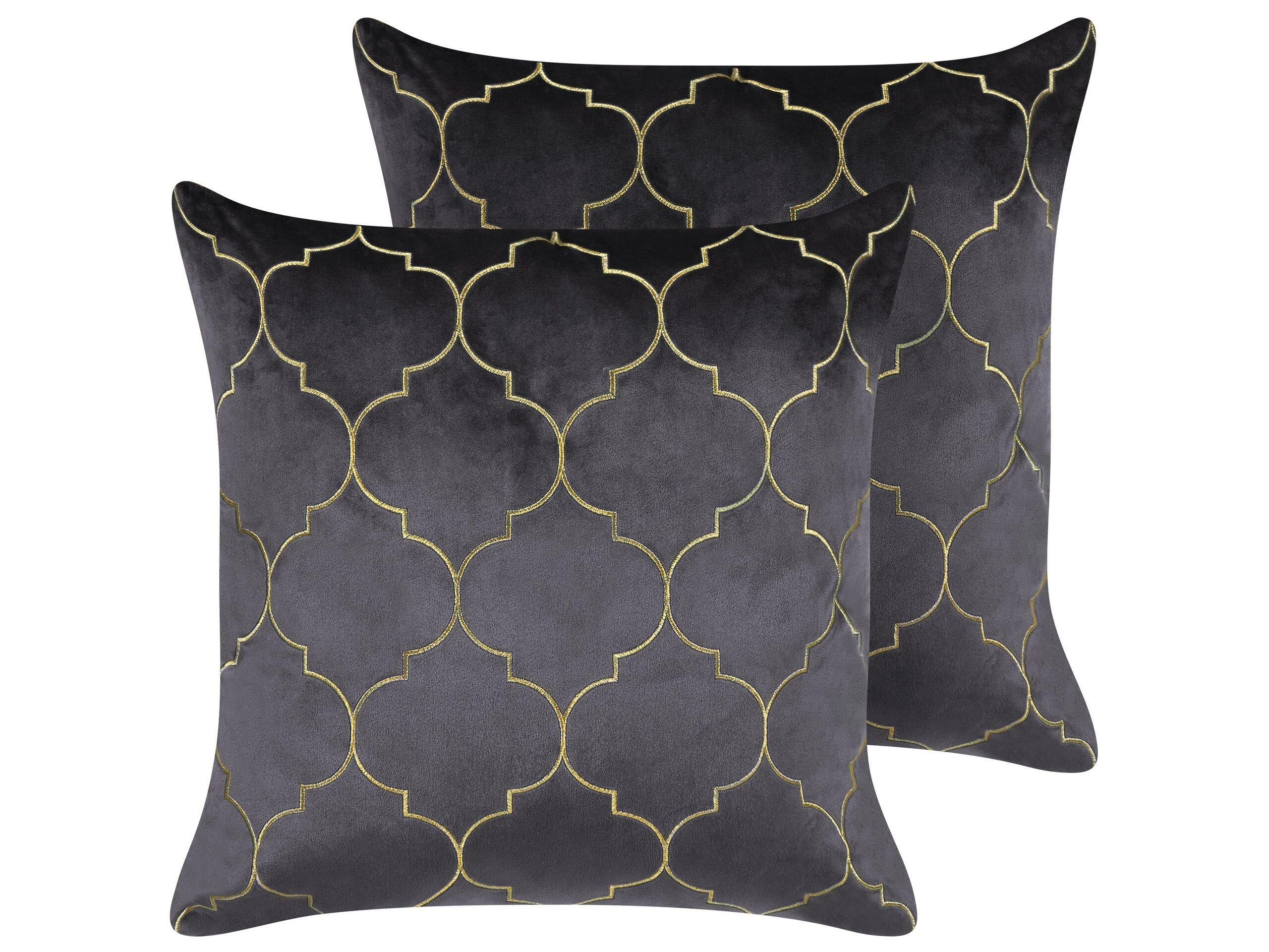 Dekokissen im 2er Set in Grau mit marokkanischem Muster. Ein Stück Orient für Ihre Wohnung - dekorieren Sie Ihre Couch, den Sessel oder die Chaiselongue mit diesem Kissen im 2er Set in dunklem Grauton und Gold. Es wird vor allem mit anderen edlen Dekoartikeln und Accessoires harmonieren und dabei eine gemütliche Atmosphäre im Raum versprühen.
