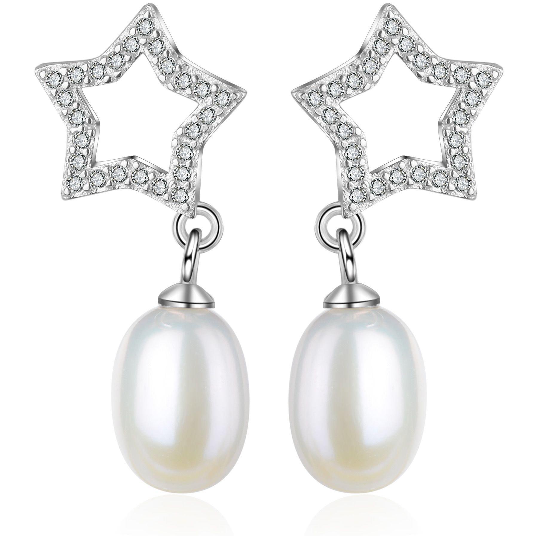 Die Perlenohrstecker sind mit hochwertigen Zirkonia verziert, die einen Stern bilden und bei jeder Bewegung glitzern. Eine schimmernde tropfenförmige Süßwasserperle fungiert als Blickfang und macht den Look perfekt. Die Ohrringe passen dank der unterschiedlichen Materialen zu jedem modernen und klassischen Outfit und werden für einen Star-Auftritt sorgen. Die zeitlosen Schmuckstücke werden in einem edlen Baumwollsäckchen mit Perlen in einer exklusiven Box geliefert – ideal als Geschenk.