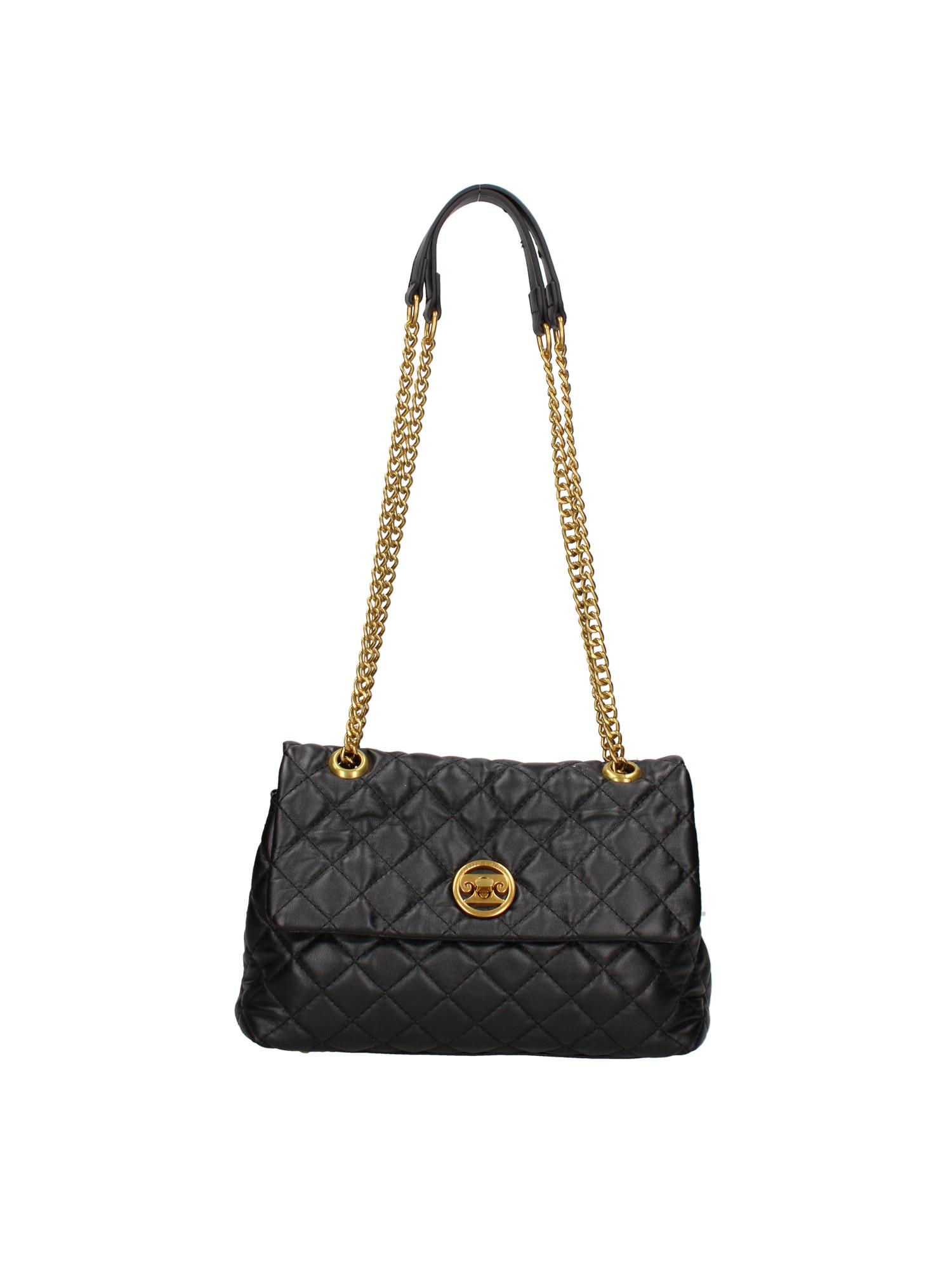 Diese elegante Umhängetasche präsentiert sich in einem klassischen gesteppten Design und ist ein raffiniertes Accessoire für verschiedene Anlässe. Die Tasche ist mit einem sicheren Klappenverschluss und einem markanten goldfarbenen Logo-Detail auf der Vorderseite ausgestattet.