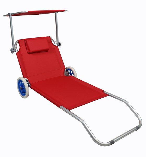 VCM, Sonnenliege Klappbar Leicht | Gartenliege Wetterfest | Camping Liegestuhl mit Rollen | Aluminium Strandliege mit Dach | Ideal für Garten und Balkon |