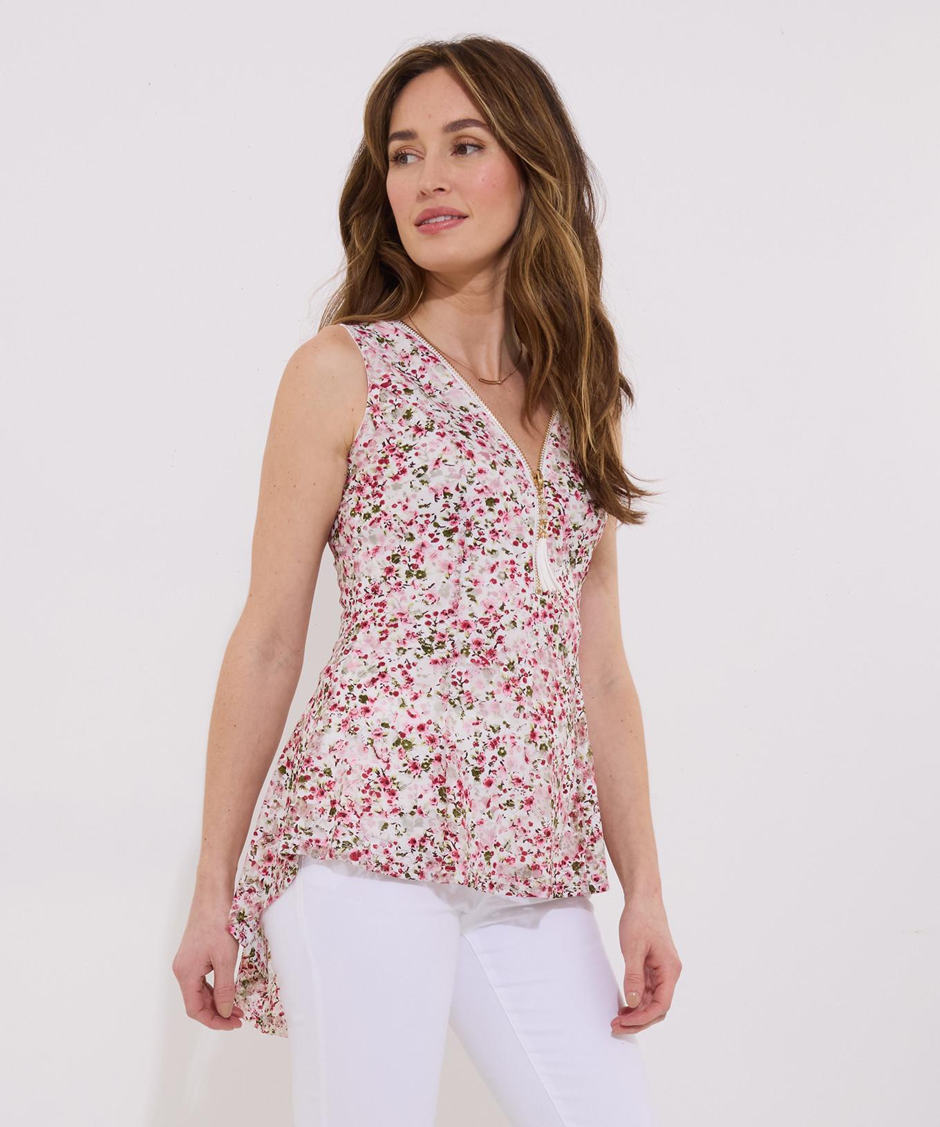 Dieses ärmellose Top präsentiert ein zartes florales Spitzendesign, das eine charmante und feminine Ästhetik bietet. Der V-Ausschnitt wird durch einen funktionalen Reissverschluss ergänzt, der der klassischen Silhouette eine moderne Note verleiht. Das Top ist mit einem High-Low-Saum gestaltet, der einen schmeichelhaften Fall und einen zeitgemässen Stil bietet.