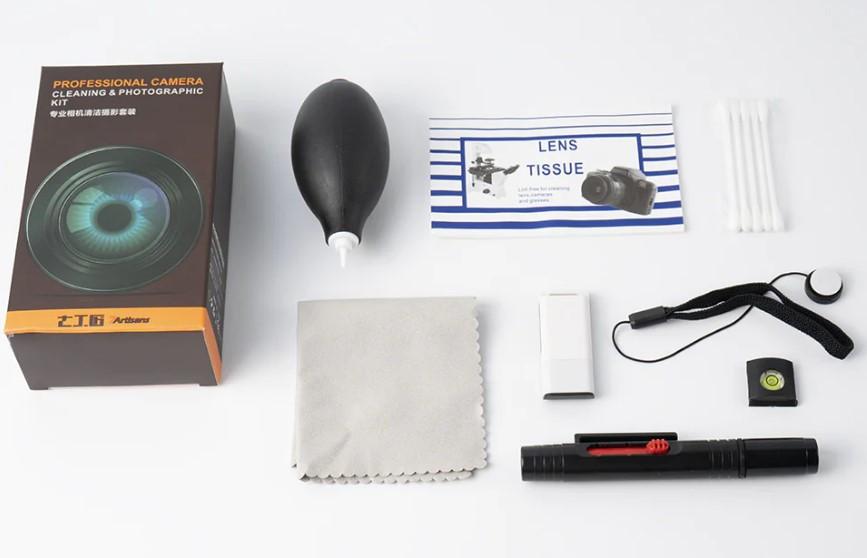 Produkttyp: Reinigungsset, Packungsgrösse: 1 StückSowohl für die Innen- als auch Aussenreinigung geeignetEignet sich für eine Vielzahl von GerätenSchonende, professionelle Reinigung Ihres EquipmentsLieferumfang:1x 7Artisans Cleaning Kit bestehend aus:- Reinigungspinsel- Blasebalg- Linsentuch- Wattestäbchen- Mikrofasertuch- Anti-Tropfschnurr- Wasserwaage- Kartenlesegerät