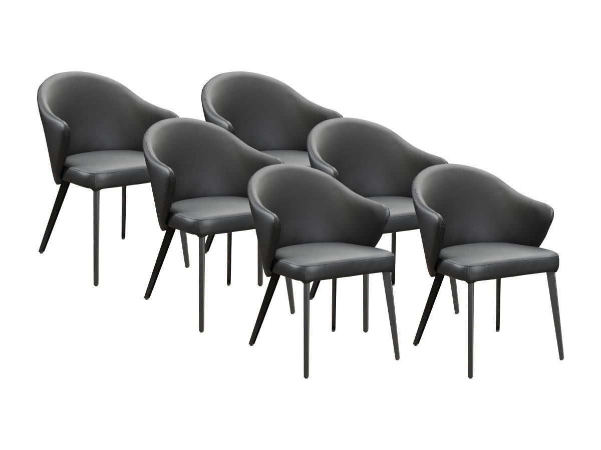 Maison Céphy Stuhl mit Armlehnen 6er-Set - Leder & Stahl - Schwarz - MIBELLY von Maison Céphy