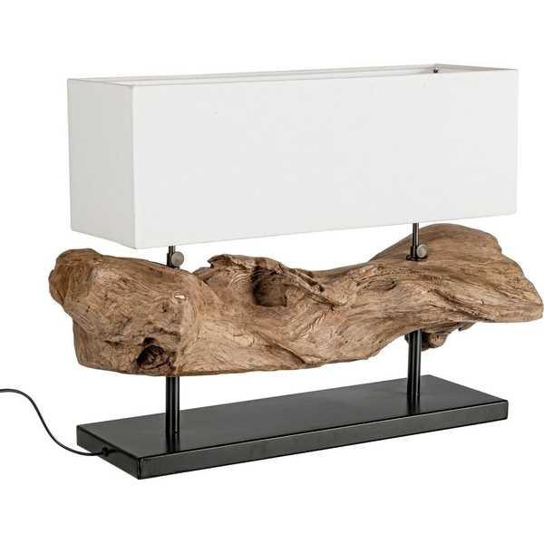Tischleuchte Kleta aus recyceltes Holz, Baumwolle und Stahl, Farbe weiss, 75 x 25 x 55 cm
