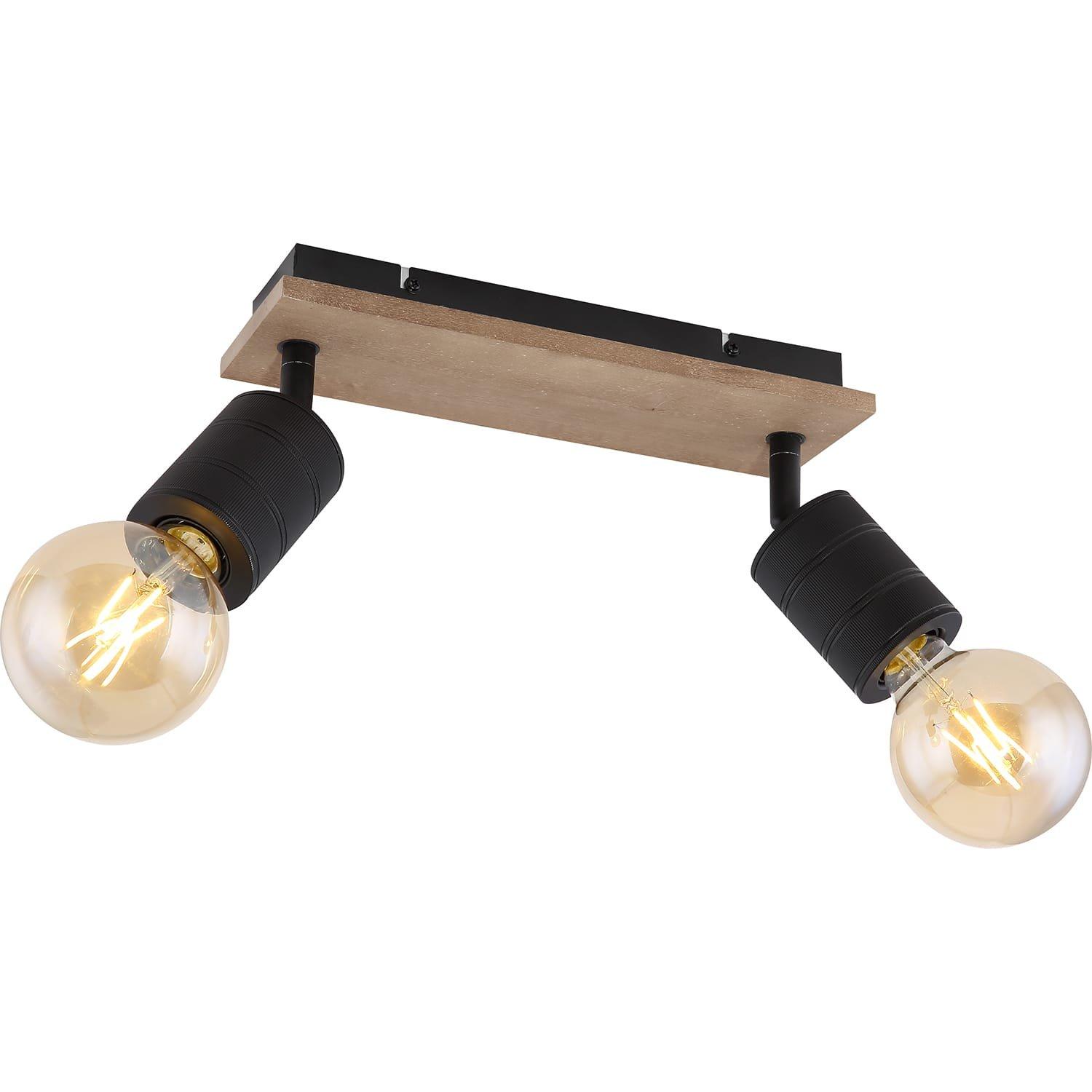 Strahler Holz dunkelbraun, Metall schwarz matt, LxBxH:310x100x180, exkl. 2xE27 60W 230V