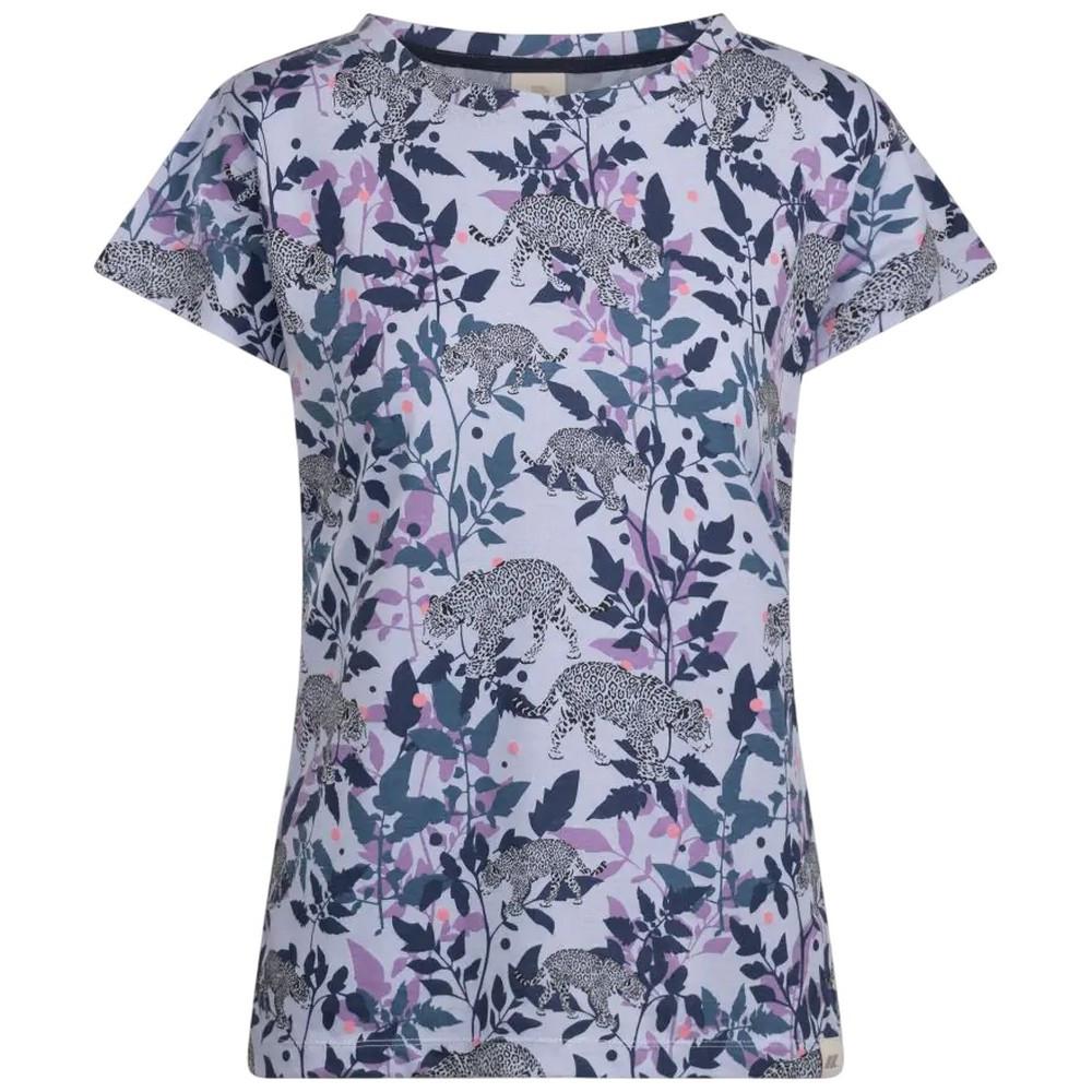 Das Phillipa T-Shirt präsentiert sich mit einem lebhaften Leoparden- und Blumenmuster und bietet eine stilvolle und bequeme Option für den Alltag. Die kurzen Ärmel und der klassische Rundhalsausschnitt machen es zu einer vielseitigen Ergänzung für jede Garderobe.