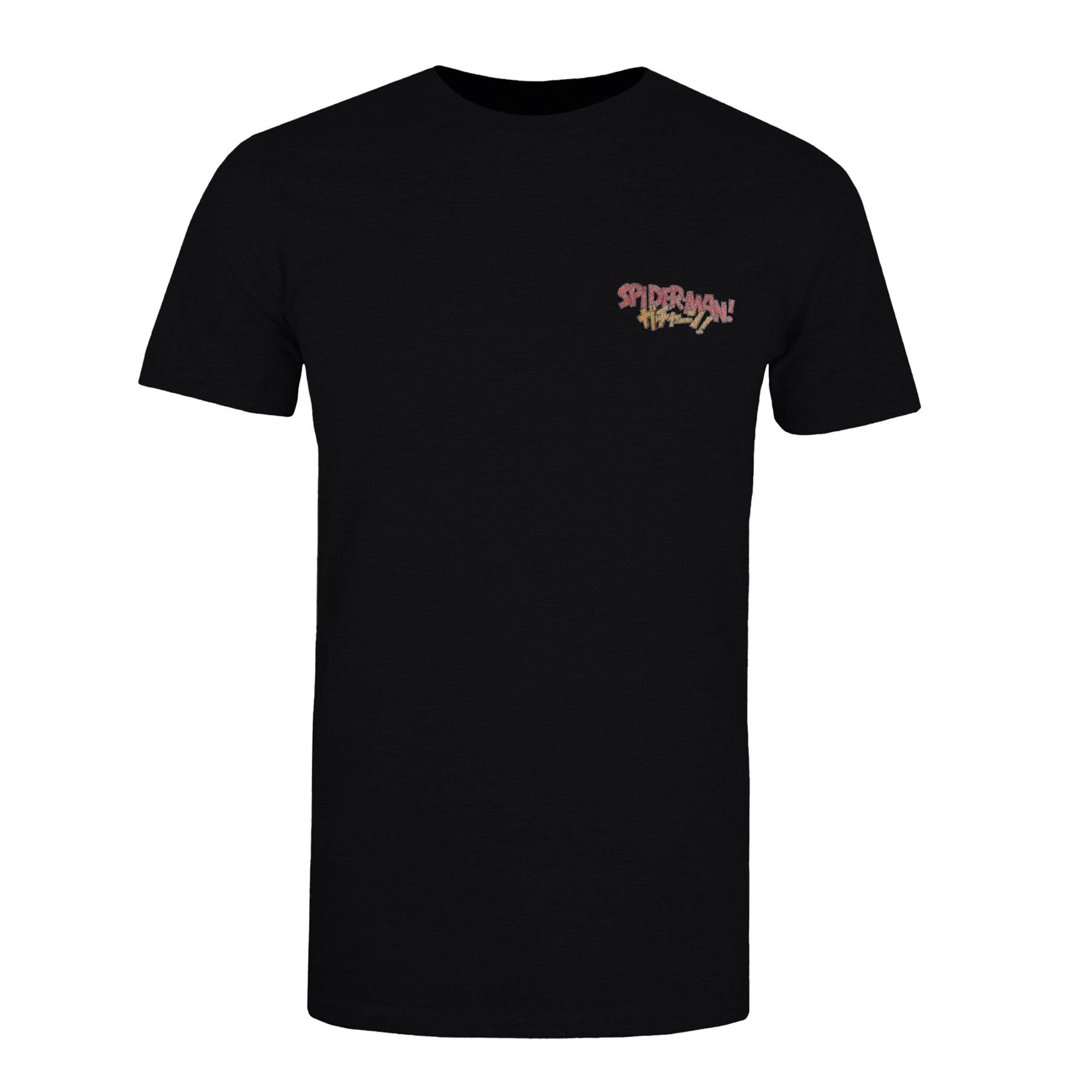 Dieses Spider-Man T-Shirt verfügt über einen klassischen Rundhalsausschnitt und kurze Ärmel und bietet eine bequeme und vielseitige Passform. Das Design umfasst einen Grafikdruck und ein Logo, mit einem japanisch inspirierten Rückendruck. Es ist ein 100% offiziell lizenziertes Produkt.