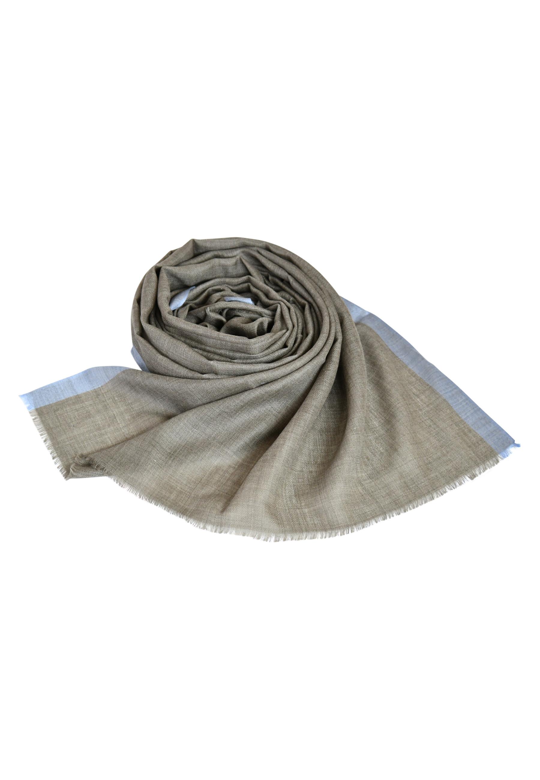 Dieser Schal, gefertigt aus hochwertiger Wolle und Kaschmir, bietet luxuriöse Wärme und ist ein vielseitiges Accessoire, das Tradition und Stil vereint. Das einzigartige Design zeichnet sich durch ein monochromes Muster aus, das durch eine dezente Kantenkontur akzentuiert wird und so einen zeitlosen und raffinierten Look schafft. Dieser Schal erfüllt einen doppelten Zweck und dient als stilvolles Accessoire für Männer und Frauen.