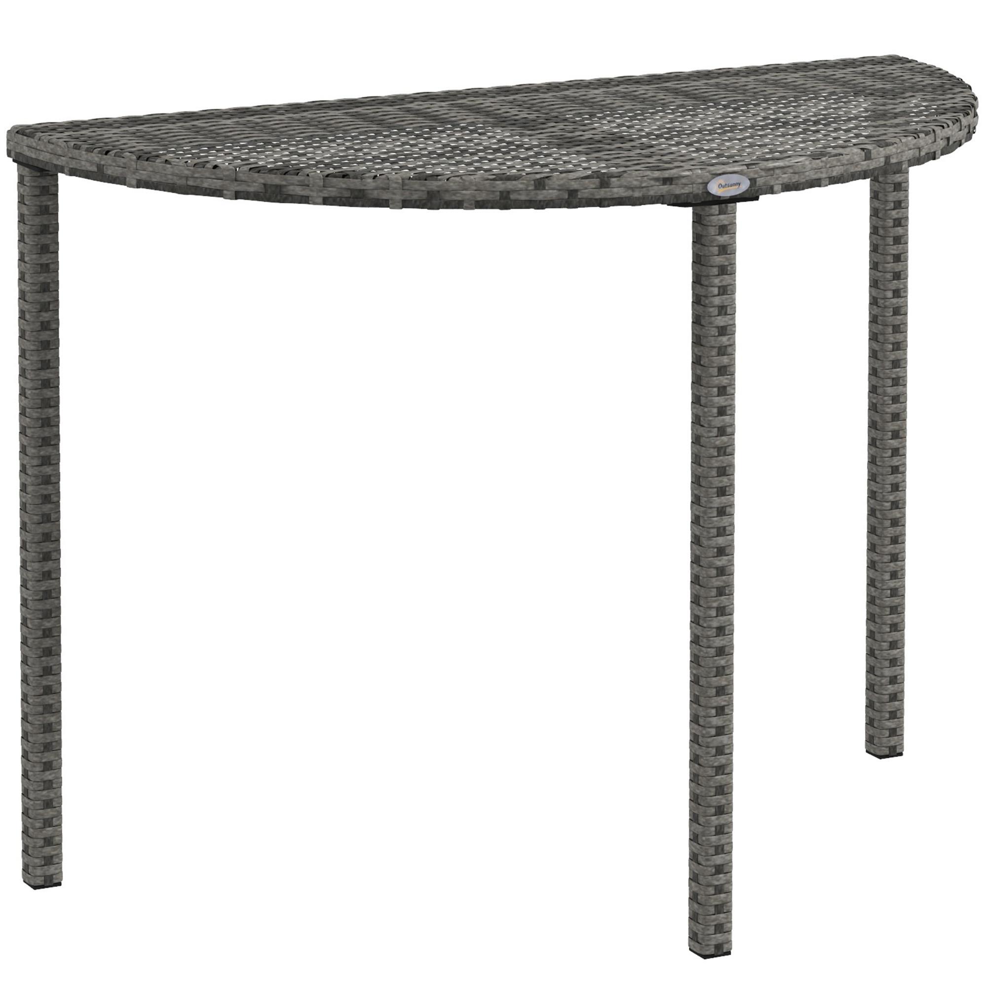 Dieser Balkontisch aus Polyrattan von Outsunny besitzt eine hohe Witterungsbeständigkeit und ist ideal für den Außenbereich wie Balkon, Garten oder Terrasse geeignet. Die Stützbeine sind aus solidem Metall, sodass der Tisch auch mit drei Beinen äußerst stabil und tragfähig ist. Dank der kompakten Maße kann der Tisch flexibel eingesetzt und leicht bewegt werden.