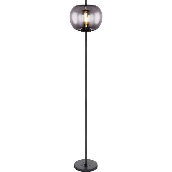 Stehleuchte Metall schwarz, Glas rauch, Schalter, D:300, H:1600, exkl. 1xE27 60W 230V