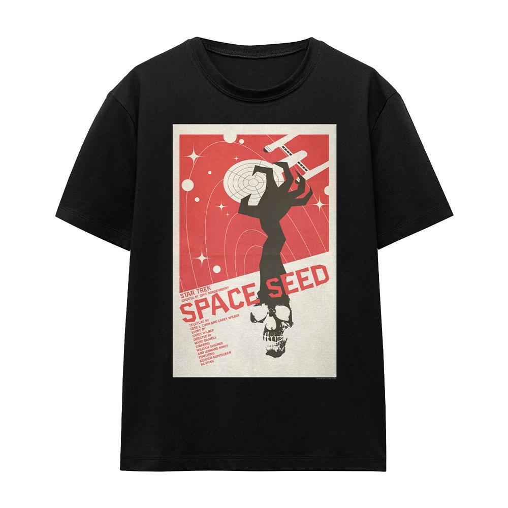 Dieses T-Shirt zeigt einen auffälligen Grafikdruck, inspiriert von "Space Seed", Episode 22 von Star Trek: The Original Series. Das Design fängt die Essenz der klassischen Episode mit einer kühnen, retro-futuristischen Ästhetik ein.