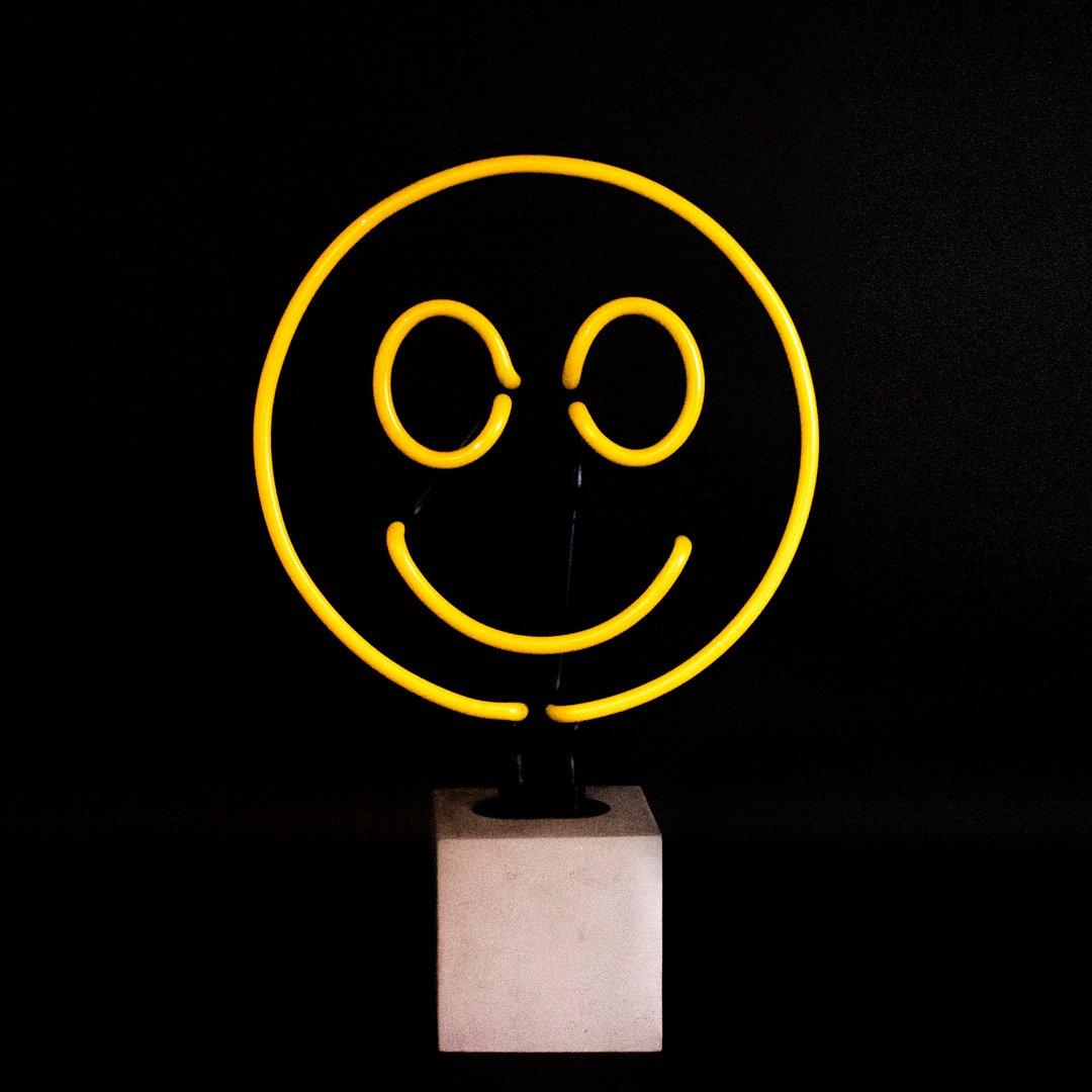 Locomocean Glas Neon Tischlampe mit Betonsockel - Smiley