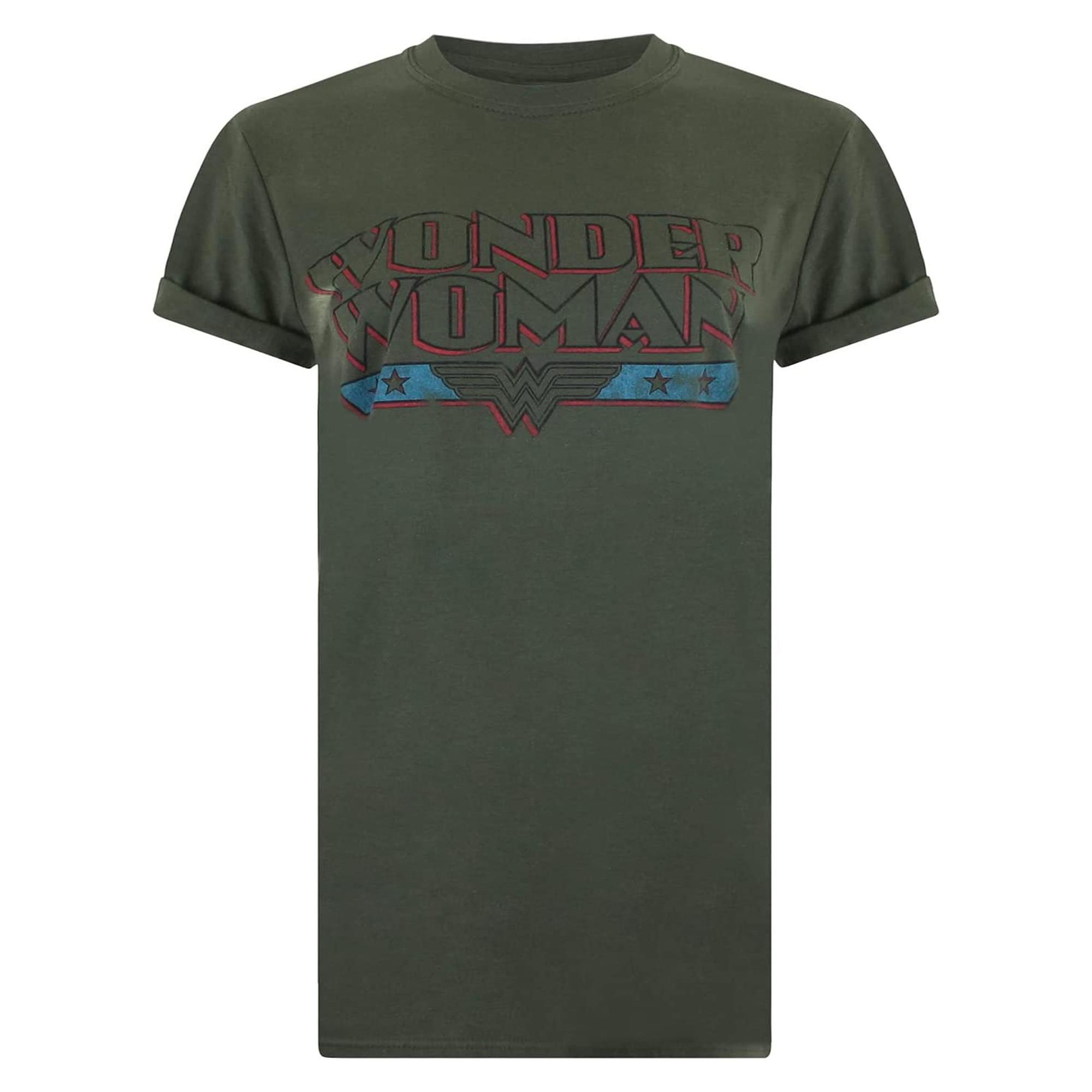 Wonder Woman, Wonder Woman Logo Retro Text Kurzarm T-Shirt