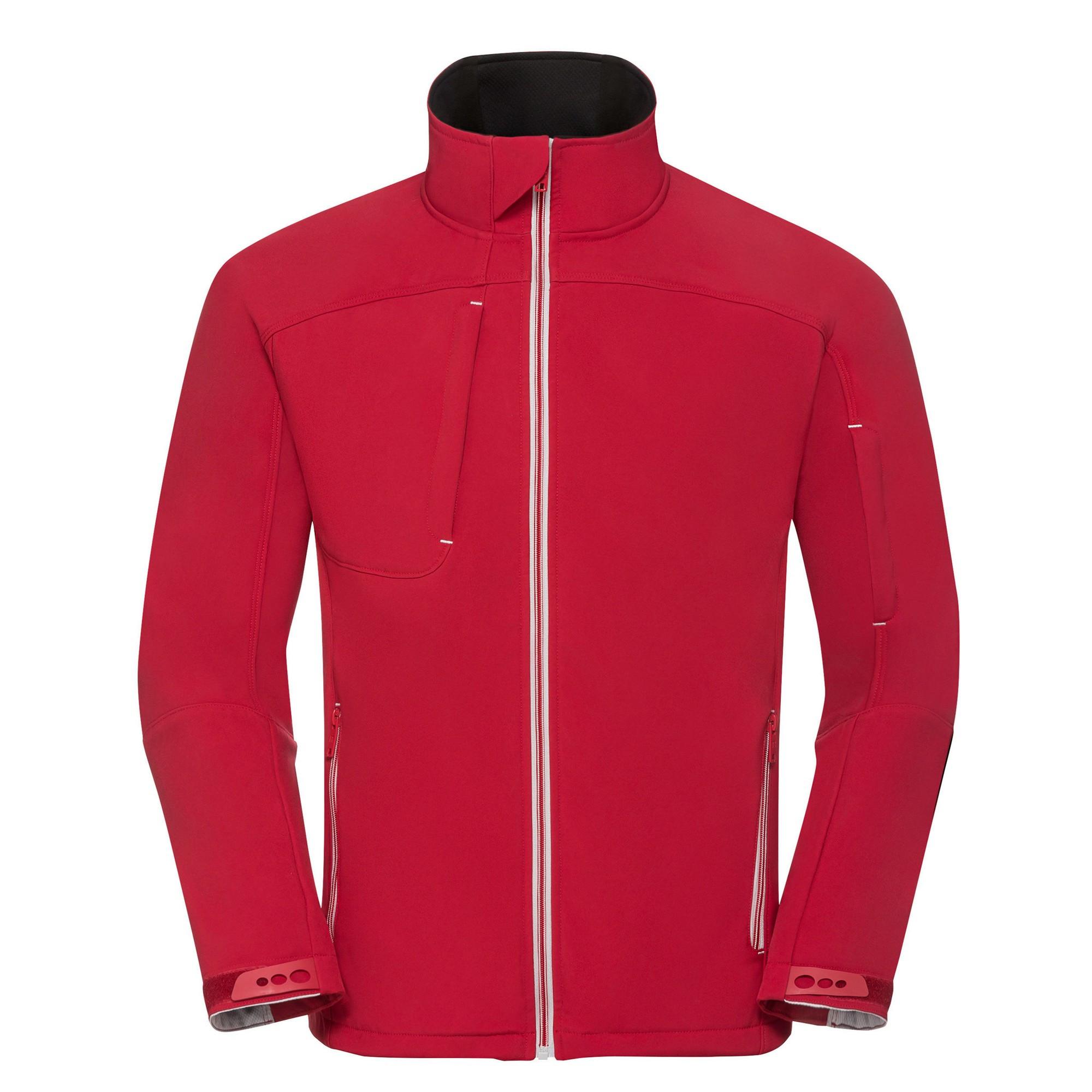 Diese Softshell-Jacke ist auf Vielseitigkeit und Komfort ausgelegt. Sie verfügt über einen durchgehenden Reissverschluss mit Kinnschutz, der einen passgenauen Sitz und Schutz vor den Elementen gewährleistet. Die Jacke umfasst mehrere Taschen zur praktischen Aufbewahrung von Essentials.