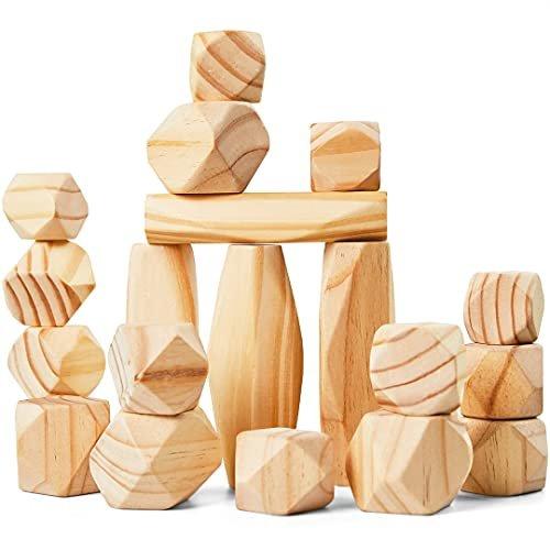 EINZIGARTIGES SPASSSPIEL - Balance-Steine sind eine wunderbare und fantastische Möglichkeit, die Kreativität Ihrer Kinder zu fördern und ihnen zu helfen, verschiedene Formen zu erkunden. Im Gegensatz zu den traditionellen Holzbausteinen bietet unser Set 20 einzigartige Steine in 5 verschiedenen Größen, Formen und Gewichten, was das Spiel noch herausfordernder und interessanter macht Hölzerne Stapelsteine - Jeder Stein ist ein solider Polyeder mit unterschiedlichen Seiten, Gewicht und Größen, was das Stapeln erschwert. Dieses Spielzeug hilft Kindern, ihre Neugier zu steigern und führt sie in die erste Phase der Problemlösung ein SPIELZEUG ZUR ENTWICKLUNG VON FÄHIGKEITEN - Stimulieren Sie den Sinn Ihres Kindes für Herausforderungen und entwickeln Sie seine praktischen Fähigkeiten, während Sie mit unseren Balance-Steinen aus reinem Naturholz Kreativität, Widerstandsfähigkeit und Ausdauer fördern. Alle Steine haben die natürliche Farbe des Kiefernholzes, damit Ihre Kinder in einer gesunden Umgebung spielen können. ANYWHERE AND ANYTIME - Es ist das perfekte pädagogische Puzzlespielzeug, um Ihre Kinder jederzeit und überall zu beschäftigen. Unser Holzspielzeug mit Stapelblöcken fördert das körperliche und geistige Wachstum durch die Entwicklung der Feinmotorik, indem es das Gefühl der Herausforderung eines Kindes stimuliert. Beschäftigen Sie Ihre Kinder überall: auf Reisen, im Auto, zu Hause, in der Schule oder im Kindergarten