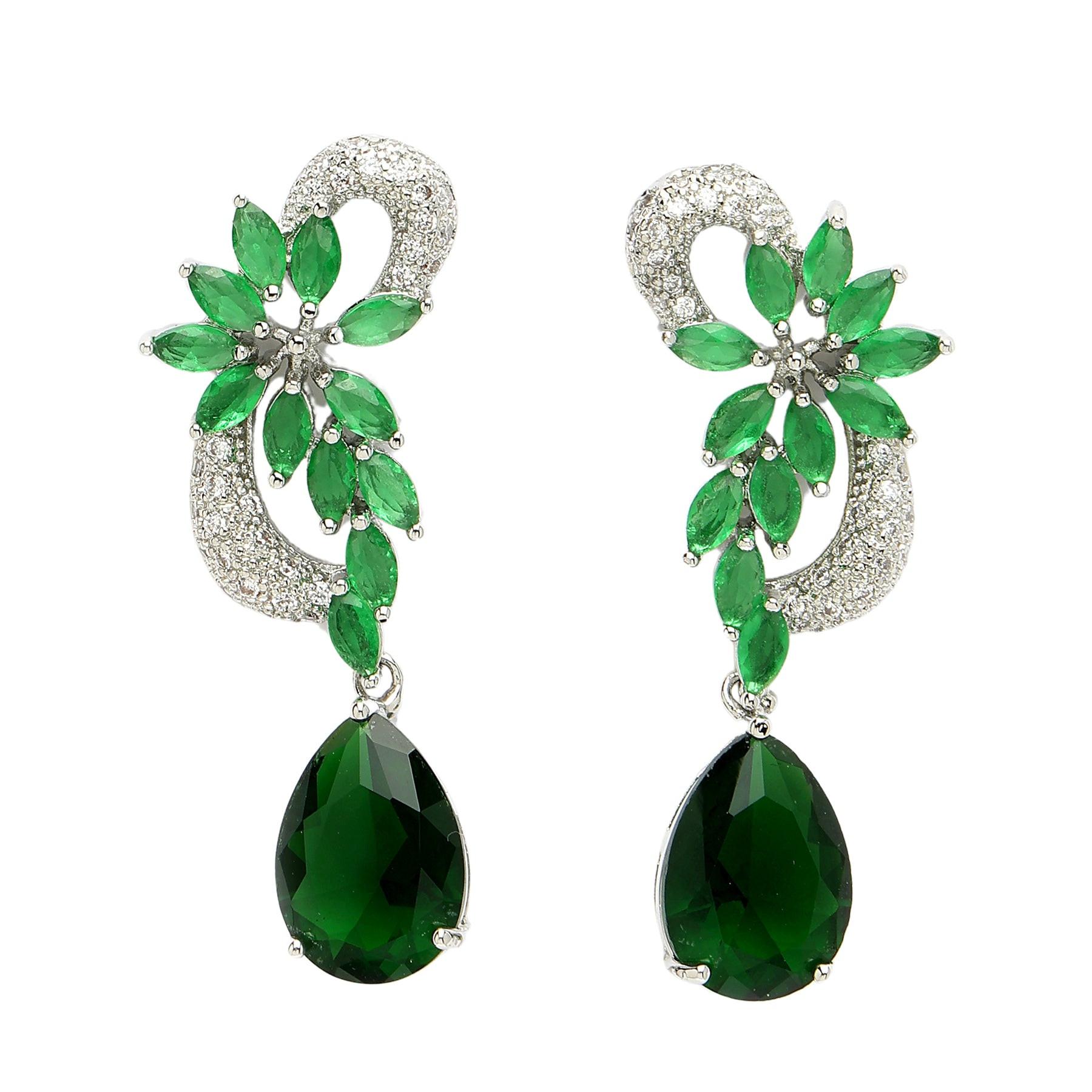 Diese modernen, grünen Zirkonia-Ohrhänger in Blumenform interpretieren klassische Eleganz zeitgemäß. Ihr schlichtes Design und die leuchtende Farbe vereinen mühelos modernen Stil mit zeitlosem Charme. Die grünen Zirkoniasteine fangen die Schönheit der Natur ein und verleihen Ihrem Outfit einen erfrischenden Farbtupfer. Lassen Sie ihre moderne Eleganz erstrahlen und ziehen Sie bewundernde Blicke auf sich. Größe: 1,6 cm x 4,3 cm | Beschichtung: Rhodiumplattiert | Verschluss: Stecker und Rückseite
