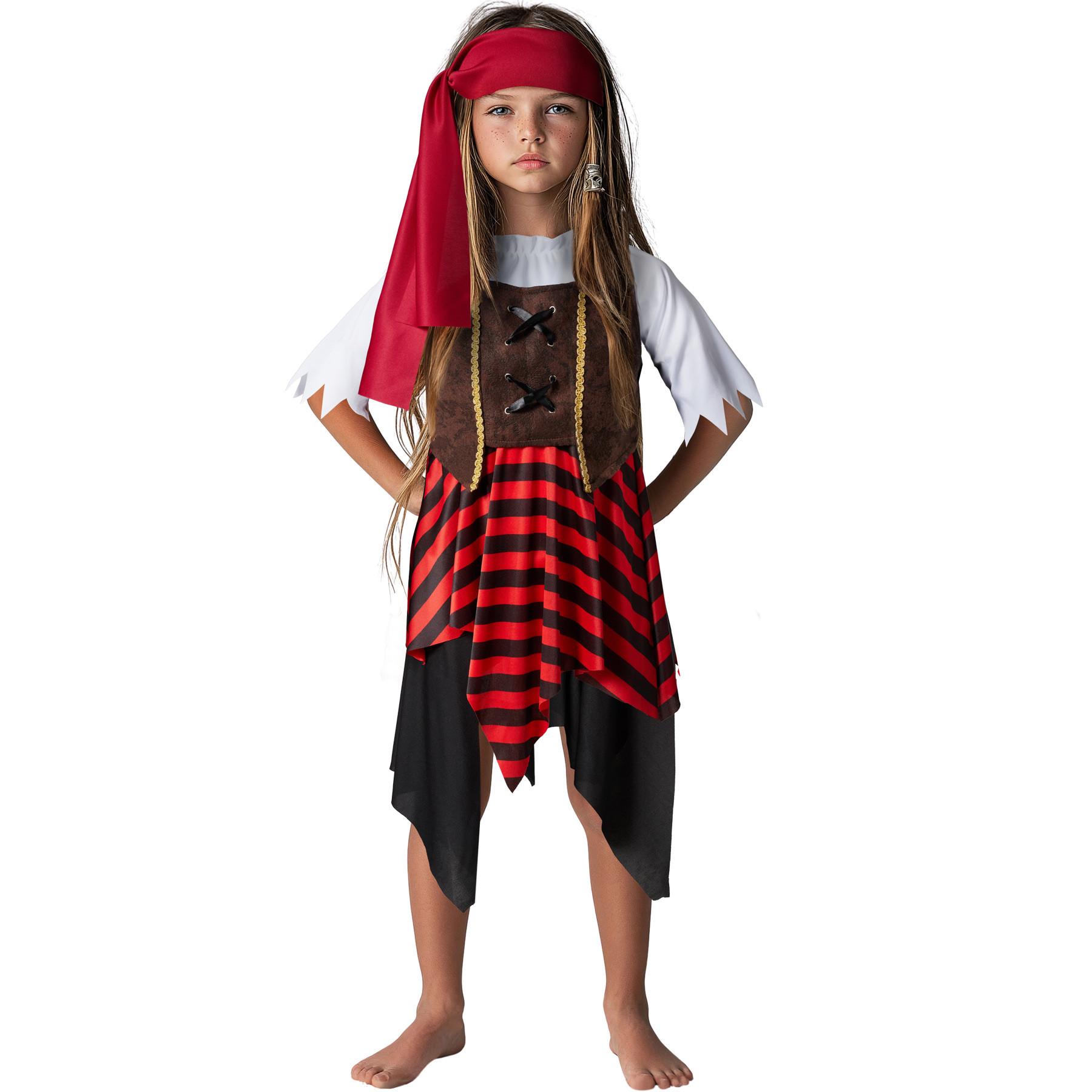 Ahoi, kleine Seeräuberin! Mit dem Mädchenkostüm Piraten Kostüm begibst Du Dich auf eine abenteuerliche Reise. Dieses Set besteht aus einem hübschen Kleid, einem braunen Korsett und einem roten Haarband alles, was Du brauchst, um die sieben Weltmeere zu erobern. Perfekt für Fasching, Karneval oder Kinder-Mottopartys!