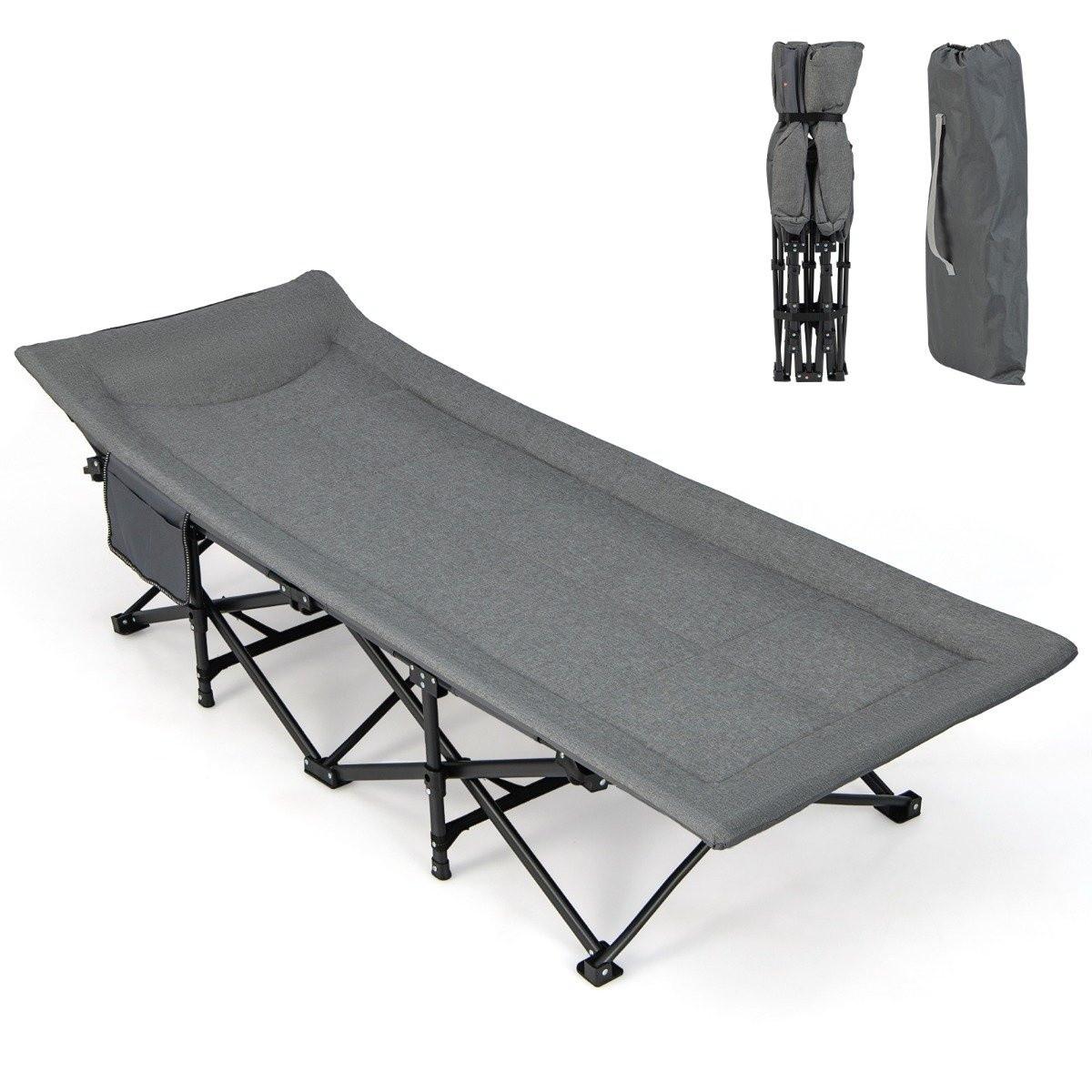 Das einfach zusammenklappbare Design des Campingbetts erfordert keine Montage, was Ihnen Zeit und Mühe spart. Seine große Größe und die Seitentasche bieten ausreichend Platz für Ihre Sachen und machen ihn zur ultimativen Schlaflösung für unterwegs. Dieses leichte und einfach zu transportierende Campingbett sorgt dafür, dass Sie überall eine komfortable Begegnung mit der Natur genießen können.