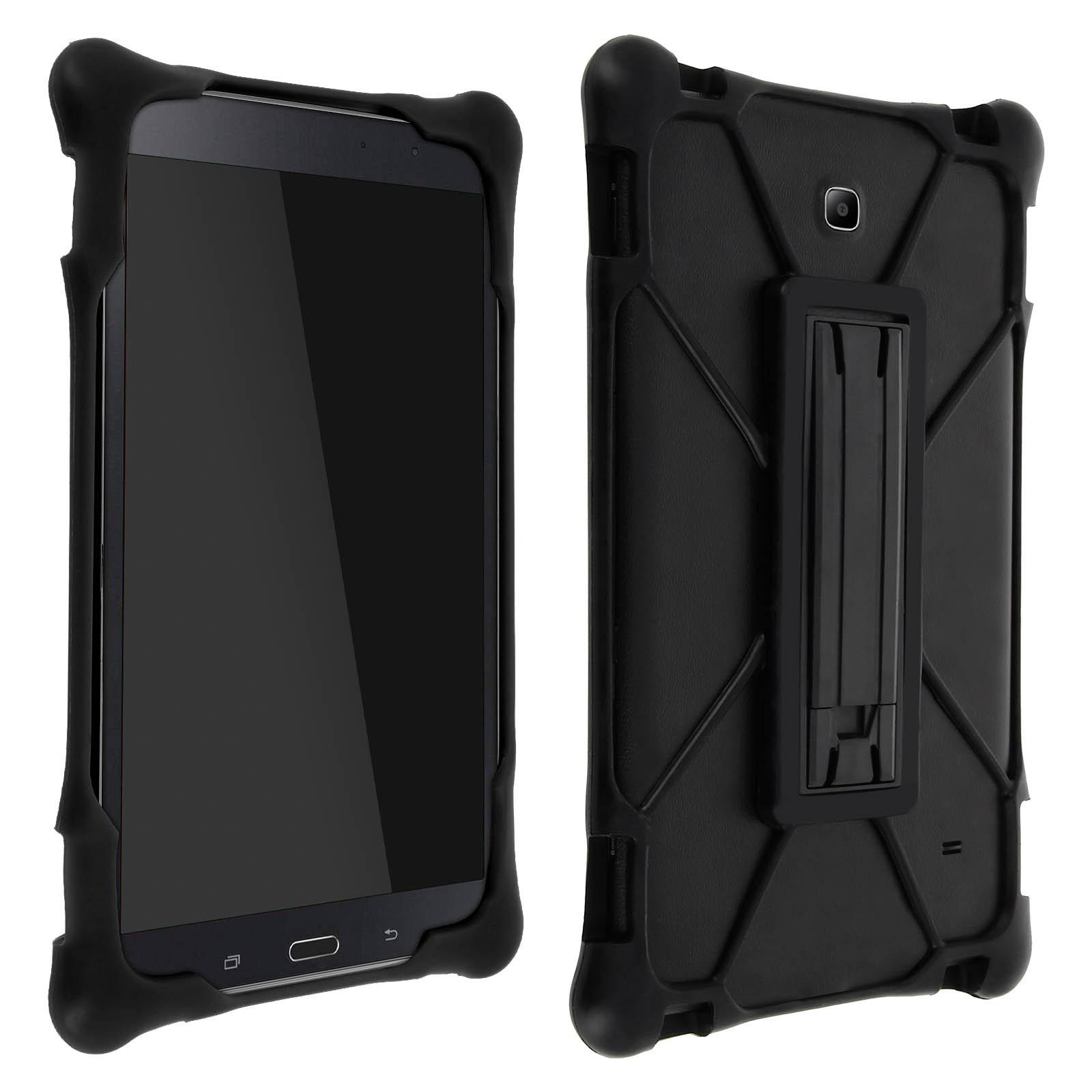 Universal Bumper Schutzhülle aus Silikon für 7'' bis 9'' Tablets. Mit schockabsorbierenden Ecken, die Ihr Tablet vor Stößen schützen. Mit integriertem Standfuß zum freihändigen Betrachten von Videos. Anschlüsse und Kamera frei zugänglich.
