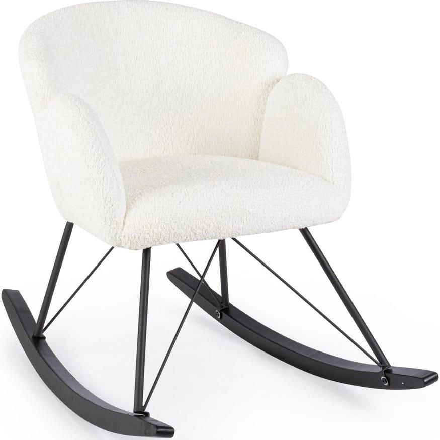 Schaukelsessel aus Polyester und Holz und Stahl, Farbe Weiss, 86 x 62 x 72hBezug aus Polyester In Boucle-OptikPolsterung aus Polyurethanschaum (Sitzdichte 25Kg/m3, 18Kg/m3 Rückenlehne)Gestell aus Stahl mit epossidischer PulverbeschichtungBeine aus Stahl mit epossidischer Pulverbeschichtung und KautschukholzBeine zu montieren