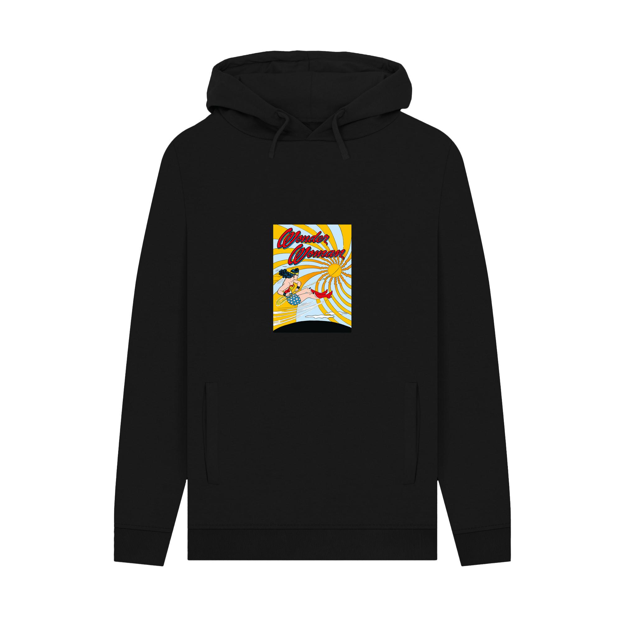 80% Baumwolle, 20% Polyester. Design: Fliegen, Logo, bedruckt, Sonne. Figur: "Wonder Woman". Kapuzenmerkmale: Doppellagig, Eingefärbte Kordelzüge. Mit Kapuze. Langärmlig. Taschenart: 1 Kängurutasche. Zum Überziehen. 100% offiziell lizenziert. S: 102 cm. M: 112 cm. L: 121,92 cm. XL: 132 cm. XXL: 137 cm.