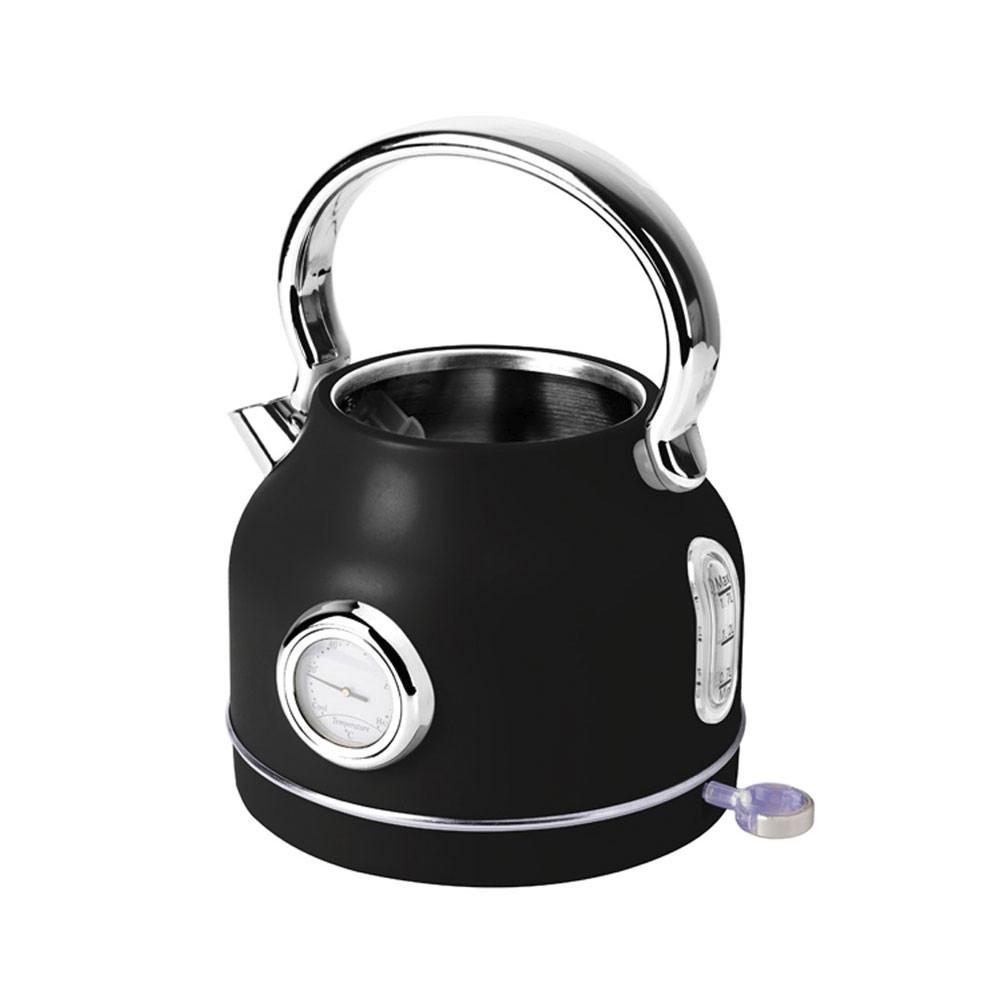 Geniesse Stil und Effizienz mit dem Berlinger Haus Wasserkocher aus der Matte Black Collection. Hergestellt aus rostfreiem Stahl 18/10, bietet dieser Wasserkocher ein Fassungsvermögen von 1,7 Litern und eine Leistung von 2200W für schnelles Erhitzen. Dank des 360° schwenkbaren Sockels, der benutzerfreundlichen Bedienung und der praktischen Kabelaufbewahrung ist er ein Muss für jede moderne Küche., , Besondere Features sind die automatische Abschaltung bei Erreichen des Siedepunkts, der Trockenkochschutz, ein transparenter Wasserstandsanzeiger, ein herausnehmbarer Filter und ein eingebautes Thermometer für genaue Temperaturüberwachung. Der Berlinger Haus Wasserkocher kombiniert Funktionalität mit elegantem Design - perfekt für alle, die Wert auf Qualität und Ãsthetik legen., , Produktinformation, 18/10 rostfreier Edelstahl, BPA-frei, Fassungsvermögen: 1,7 l, Farbe : Matte Black, Mit transparentem Wasserstand, 360° drehbarer Sockel, einfach zu bedienen , Schaltet sich automatisch ab, wenn das Wasser kocht, Mit transparentem Wasserstand, Herausnehmbarer Filter, 360° drehbar, Kabelaufbewahrung, Thermometer