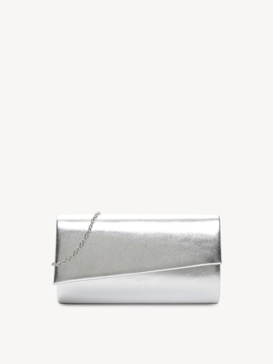 Die AMALIA Tasche zeichnet sich durch ein minimalistisches Design und klare Linien aus. Sie verfügt über eine Kette für einfaches Tragen über der Schulter oder als Umhängetasche. Die Tasche hat eine silberne Metallic-Oberfläche, die ihr ein modernes und anspruchsvolles Aussehen verleiht.
