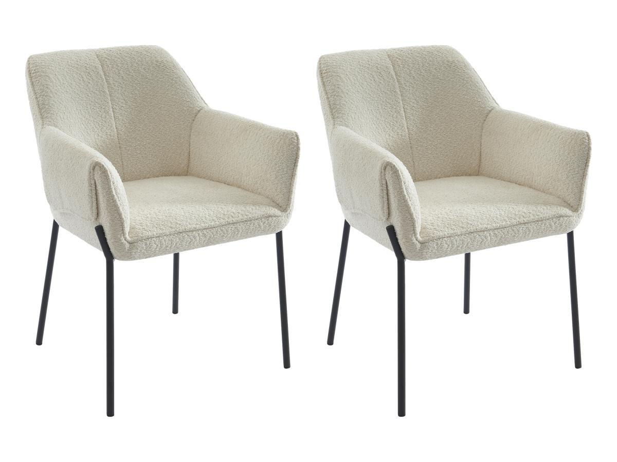 PASCAL MORABITO, Stuhl mit Armlehnen 2er-Set - Bouclé-Stoff &es Metall - Cremefarben - AKETI