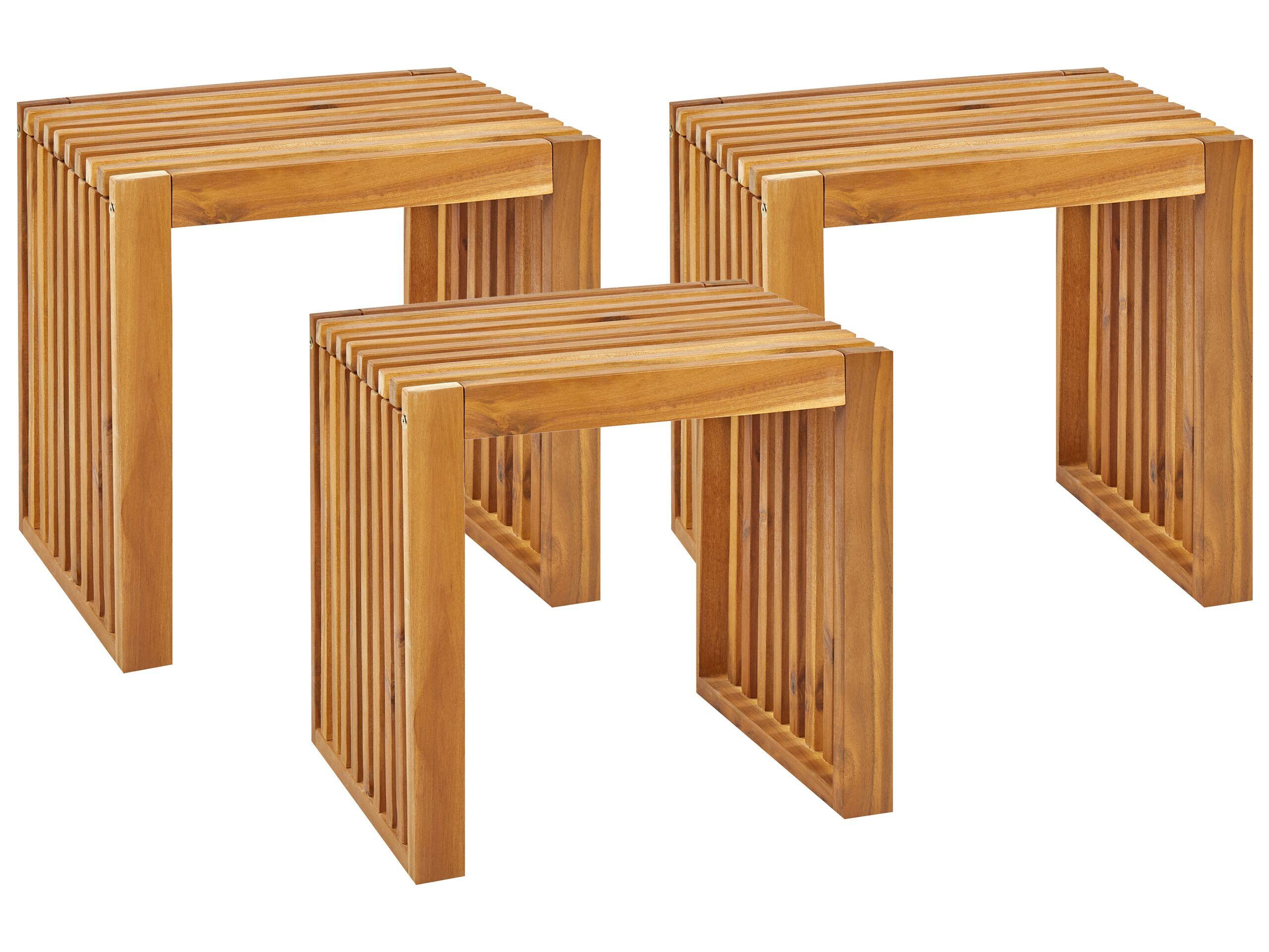 Beliani Gartenhocker 3er Set aus Akazienholz Rustikal BELLANO