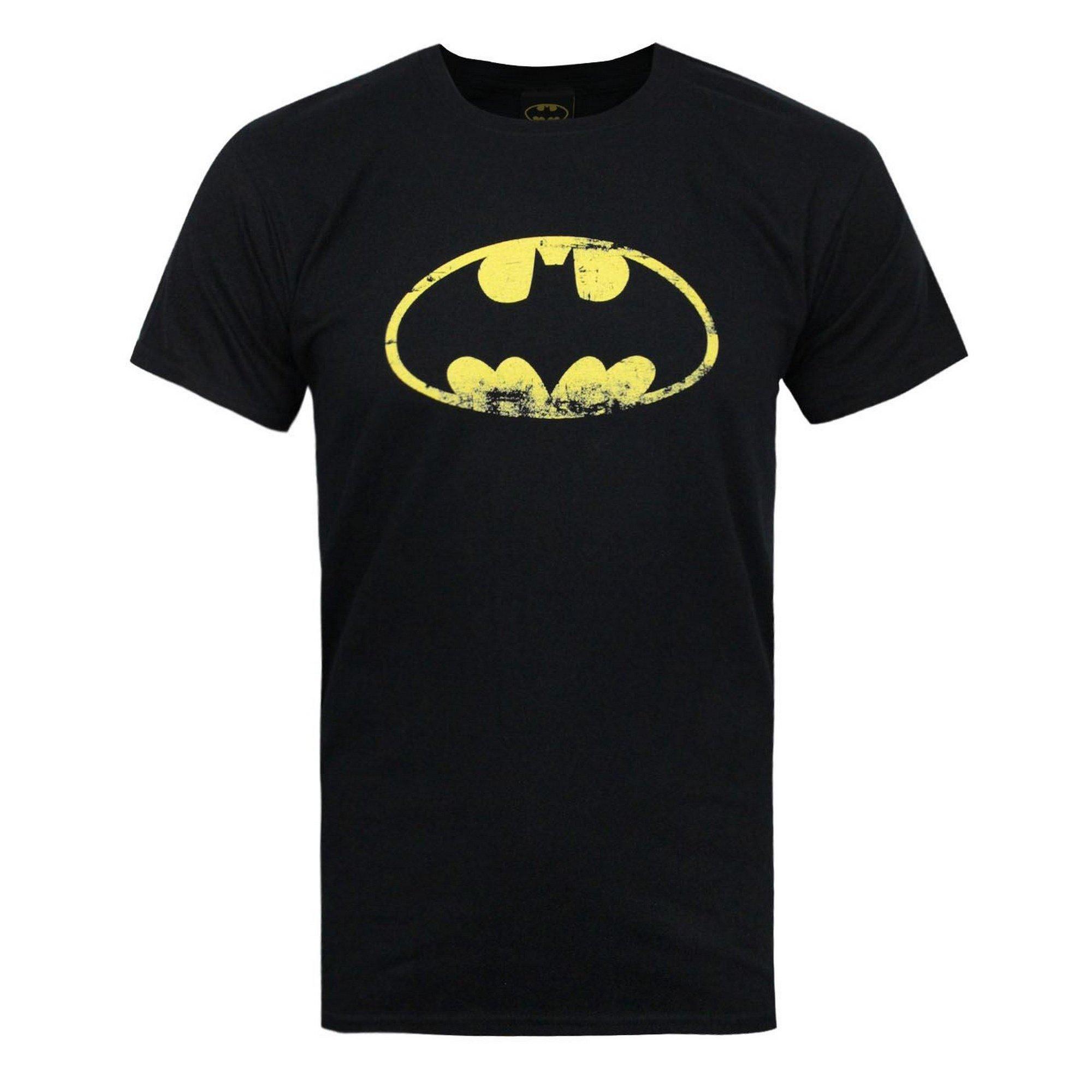 Dieses offizielle T-Shirt zeigt das ikonische Batman-Logo im klassischen Gelb- und Schwarz-Look mit unverwechselbarem Distresseffekt-Stil. Es verfügt über einen Rundhalsausschnitt mit kurzen Ärmeln und bietet eine Standard-Passform.