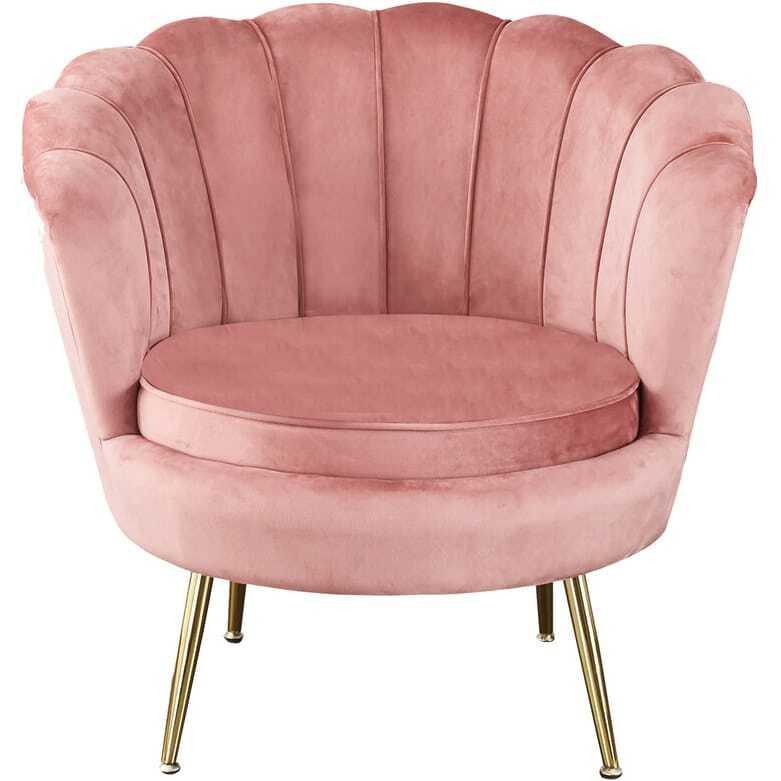 Sessel im Muschel-Design mit Bezug aus Polyester-Samt. Abgerundeter Sitz- und Rückenbereich, inklusive hohem Sitzkissen.Stuhlbeinhöhe 23 cm, max. Belastbarkeit: ca. 150 kg