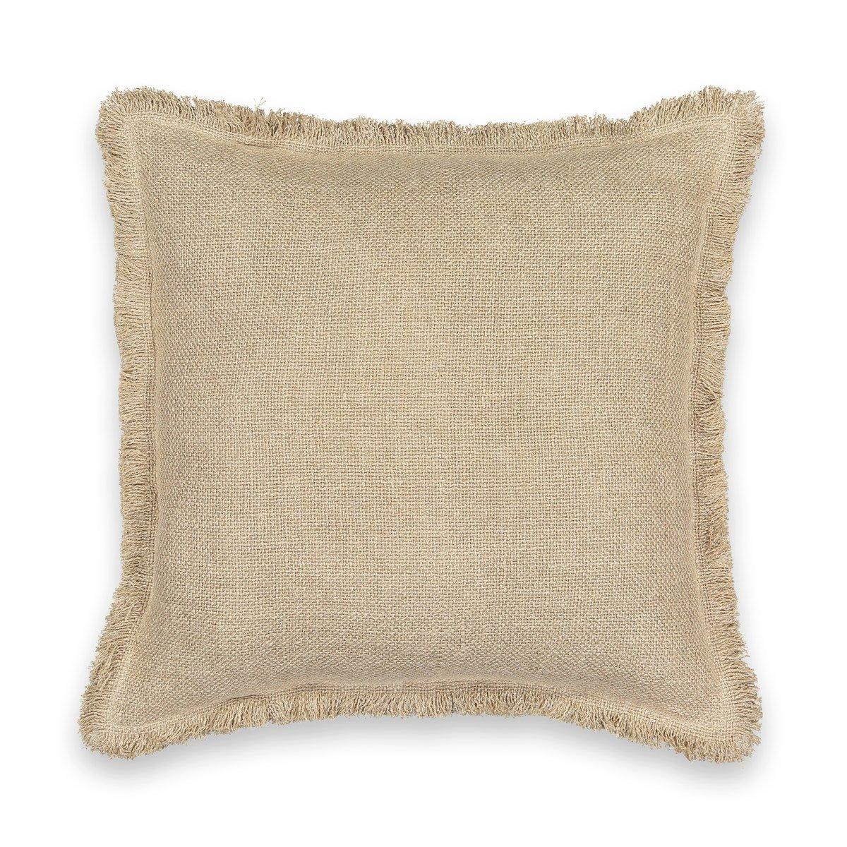 Der Kissenbezug Naoli wirkt durch die Verarbeitung von naturbelassenem Leinen schlicht und rustikal. Verziert ist er mit raffinierten Fransenabschlüssen.