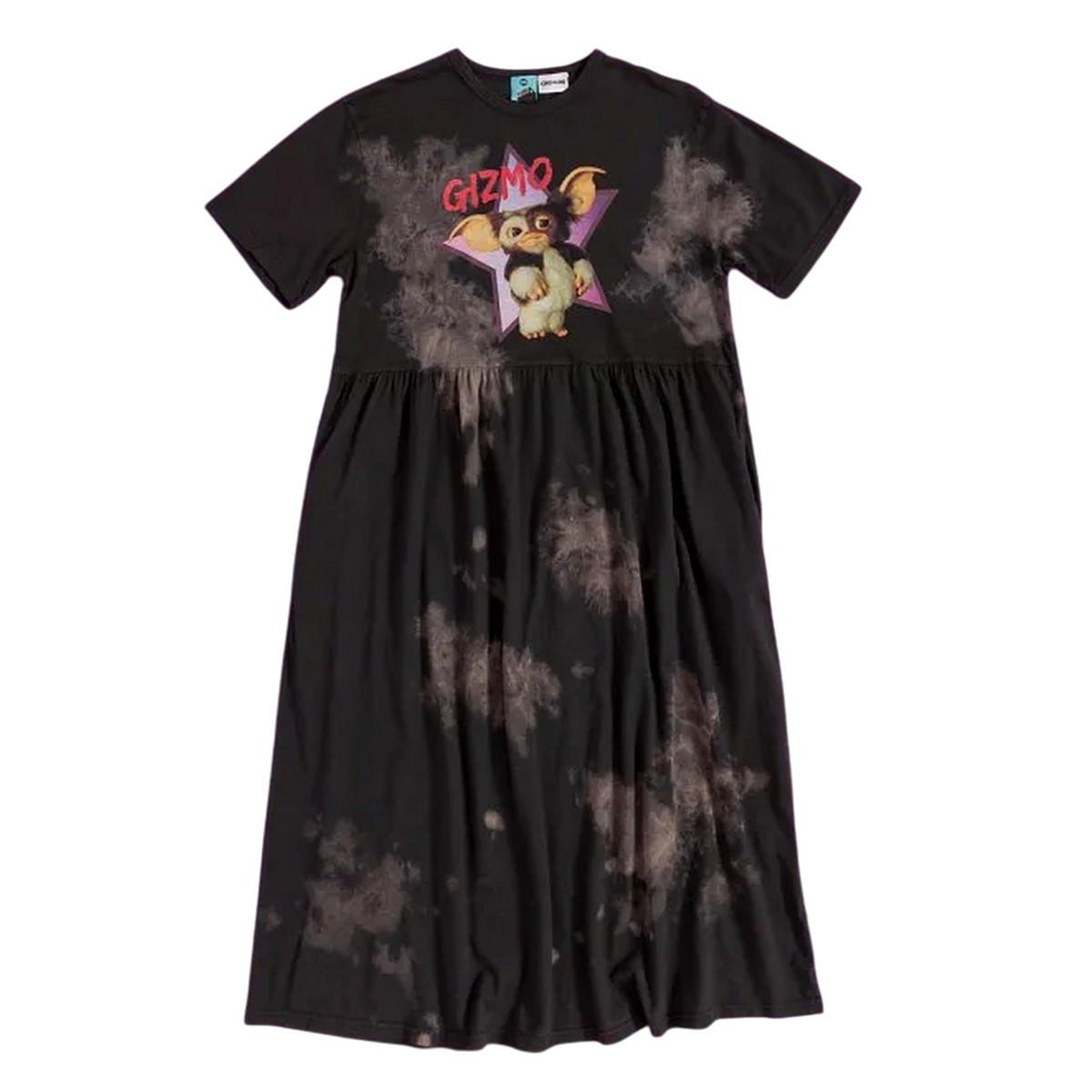 Dieses Midi-Smok-Kleid zeigt einen verspielten Grafikdruck von Gizmo auf der Vorderseite, der auf einem Batik-Hintergrund platziert ist. Das Kleid hat eine lockere Passform mit einer gerafften Taille und bietet eine bequeme und stilvolle Option für Freizeitkleidung.