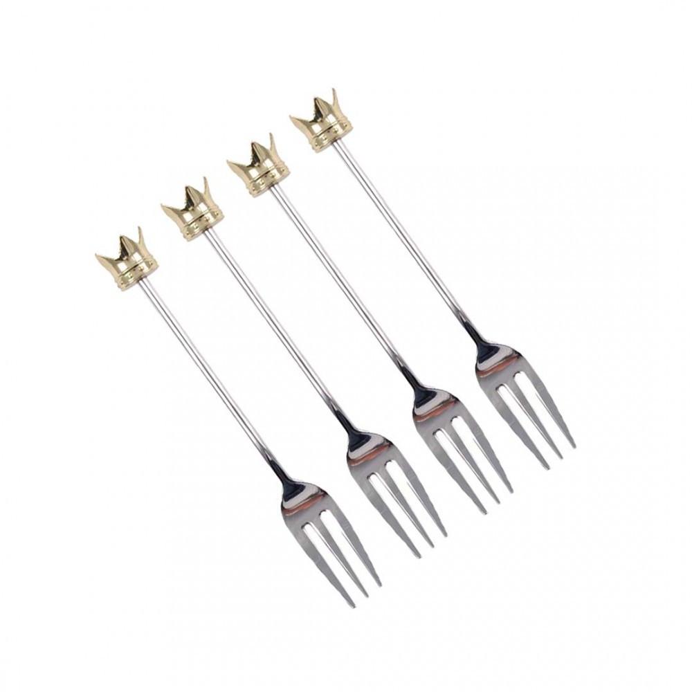 Kuchengabeln mit goldener Krone, 4er Set, 11 cm, Handwäsche, originell, um Ihrer Tafel eine kreative Note zu verleihen