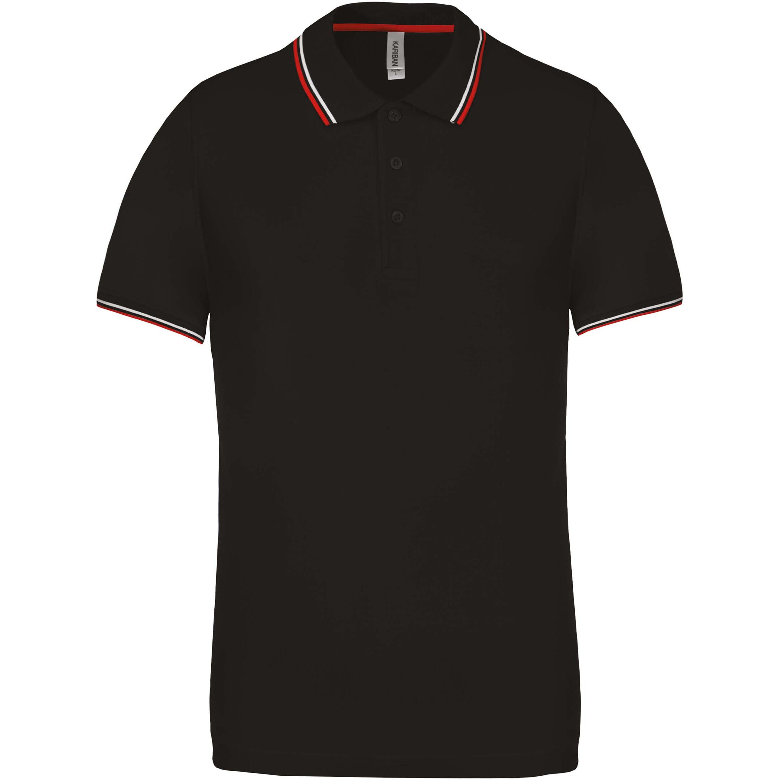 Dieses Piqué-Strick-Polohemd bietet einen klassischen und bequemen Stil. Es verfügt über eine Drei-Knopf-Leiste sowie ein kontrastierendes Nackenband und Seitenschlitze. Der gerippte Kragen und die Ärmelbündchen sind mit kontrastierenden Streifen versehen, die dem Design eine interessante Note verleihen. Das Kleidungsstück ist mit einem Doppelnahtsaum versehen.