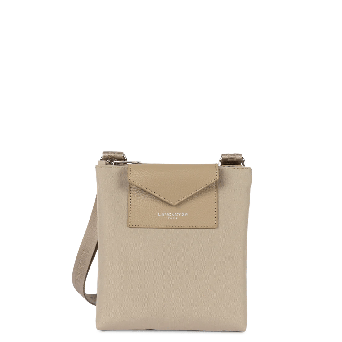 Die Smart KBA ist in Beige erhältlich, einer neutralen und eleganten Farbe, die zu allen Stilen passt. Die Tasche besteht aus strapazierfähigem und leicht zu reinigendem Nylon und Polyamid und ist mit einem Hauch von Modernität versehen, dank der Prägung des Logos "LANCASTER PARIS" in silbernen Buchstaben auf der Vordertasche.