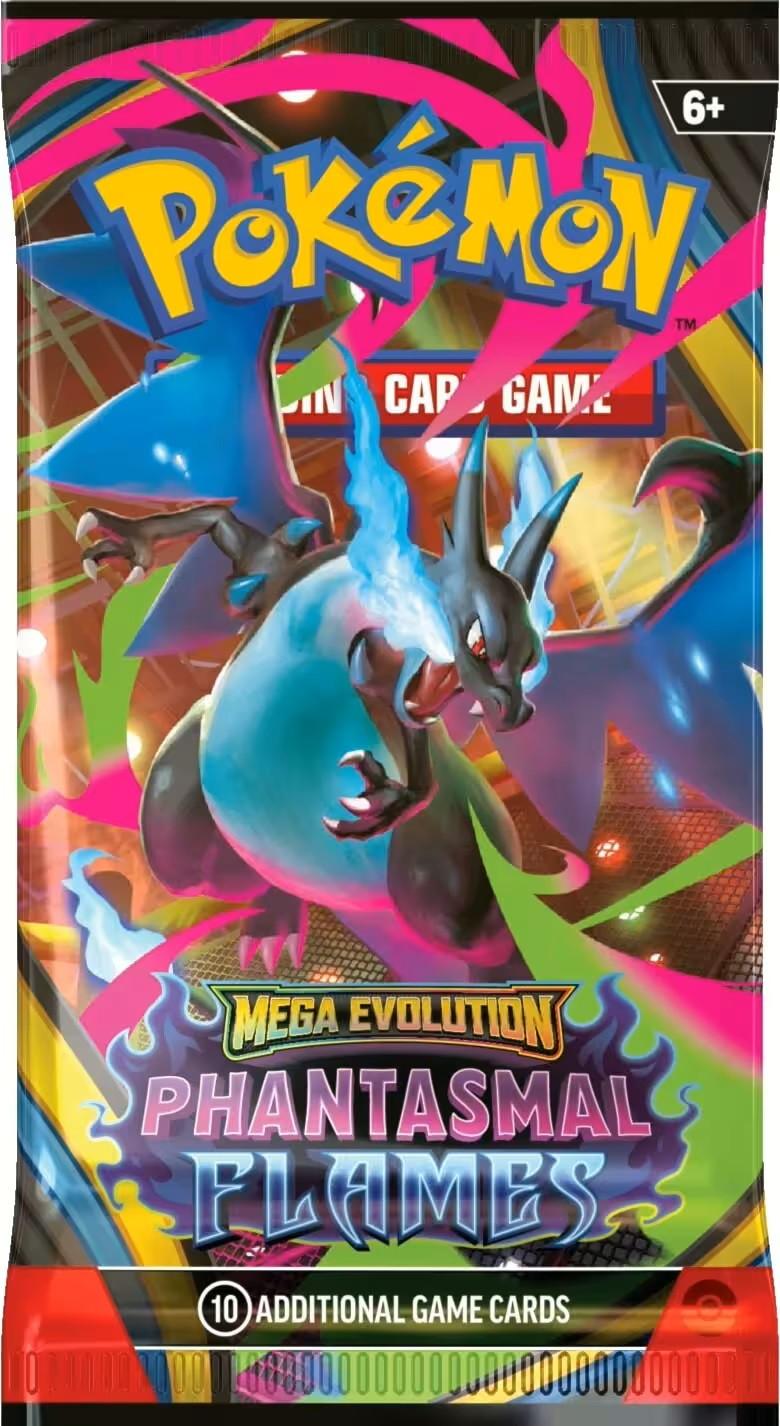 Heiße blaue Flammen züngeln über ein dunkles Schlachtfeld, während Mega-Charizard X ex emporsteigt und auf seine Gegner herabblickt! Mit einer Kälte, die der Hitze in nichts nachsteht, taucht langsam die schemenhafte Gestalt von Mega-Gengar ex auf, und beide Pokémon bereiten sich auf den Angriff vor. Entschlossen, ihr Können unter Beweis zu stellen, stellen sich Mega-Heracross ex, Mega-Lopunny ex und noch mehr Pokémon auf, um in der Erweiterung Pokémon TCG: Mega Evolution Phantasmal Flames alles zu geben!